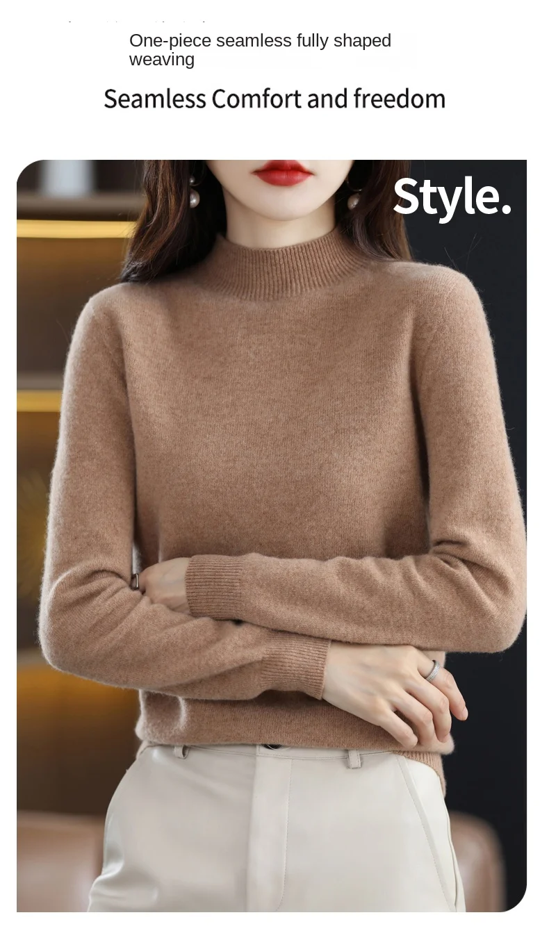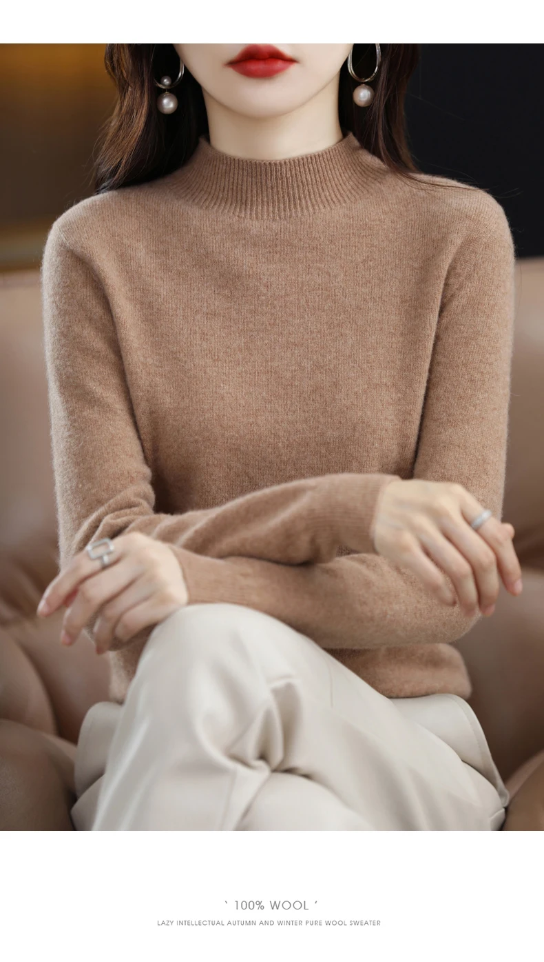 100% Pure Wool Half-neck Pullover In Autumn And Winter New Cashmere Sweater Women's Casual Knit Top Women's Coat 19 Colors