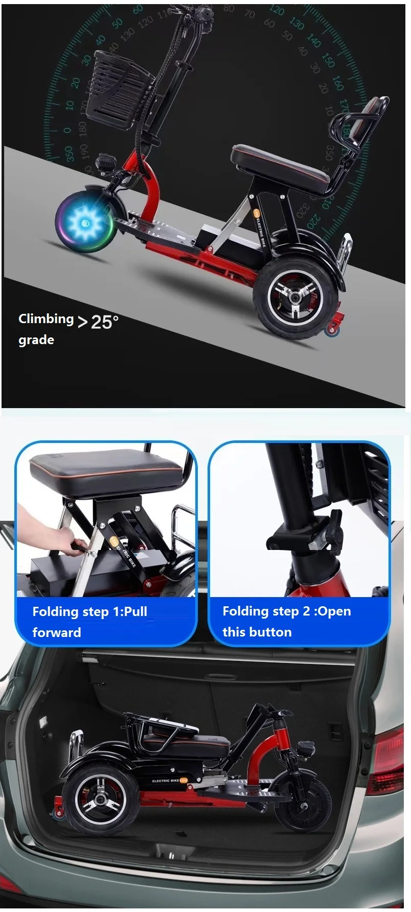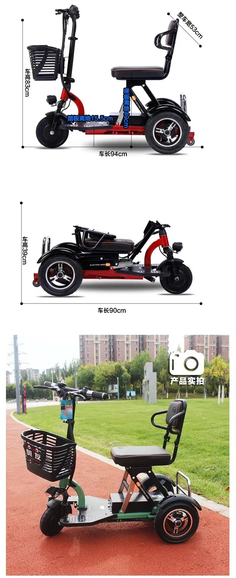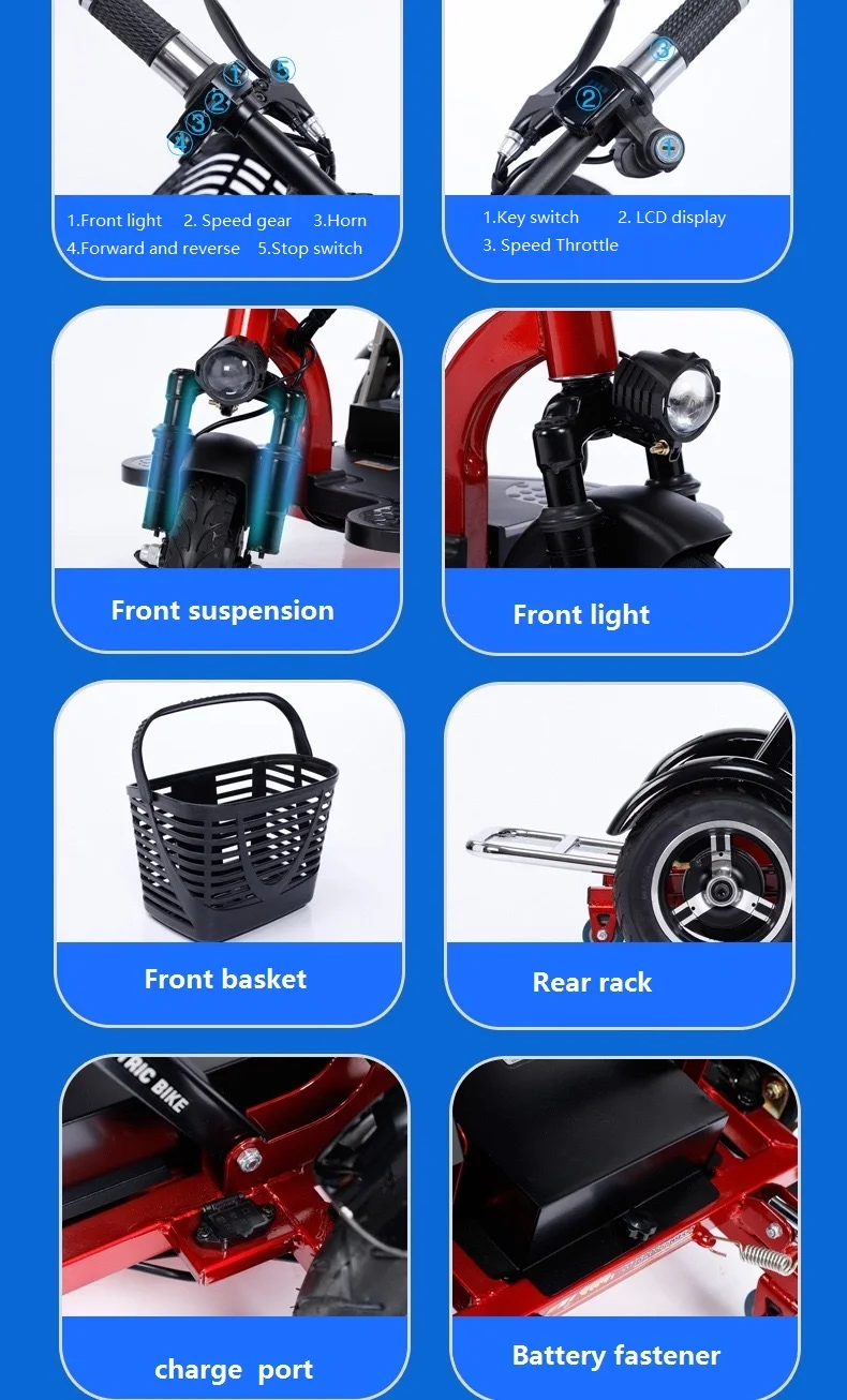 120kg Load Foldable 3 Wheel Three Wheel Folding Electric Airport Mobility Tricycle Scooter for Elderly