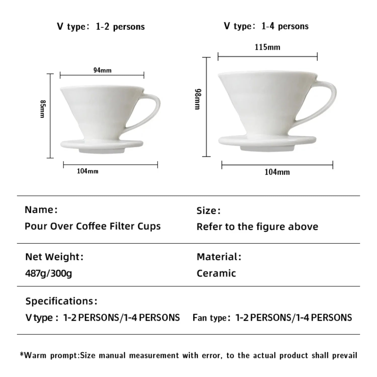 1PC V-Shaped 60 Ceramic Coffee Dripper Pour Over Cone V Shape Drip Brewing Filter Cup Coffee Maker White, 2 Cup,4 Cups