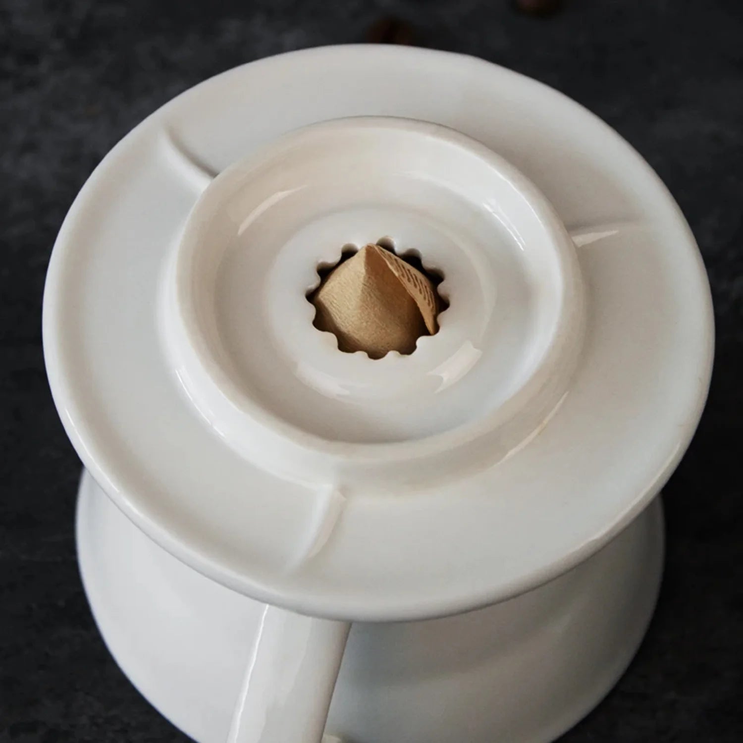 1. This sleek and modern V-shaped ceramic coffee dripper is perfect for all pour-over coffee enthusiasts. Its durable construction and unique shape ensure a consistent and flavorful brew every time.