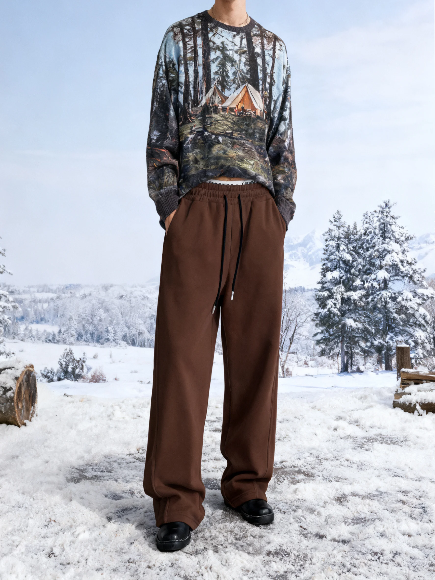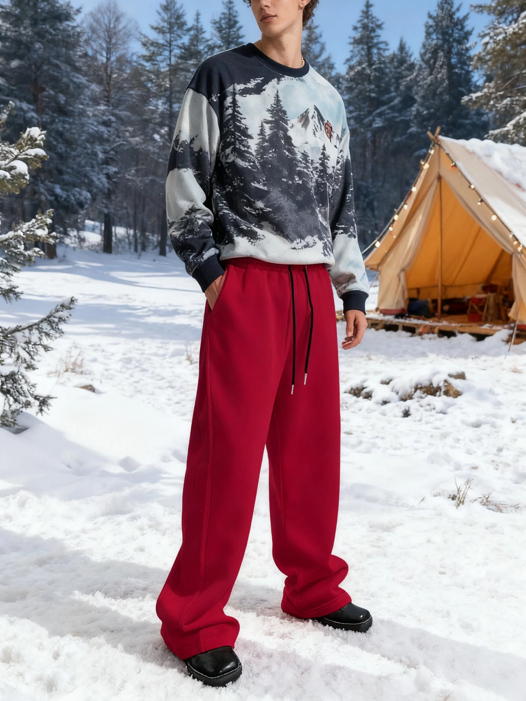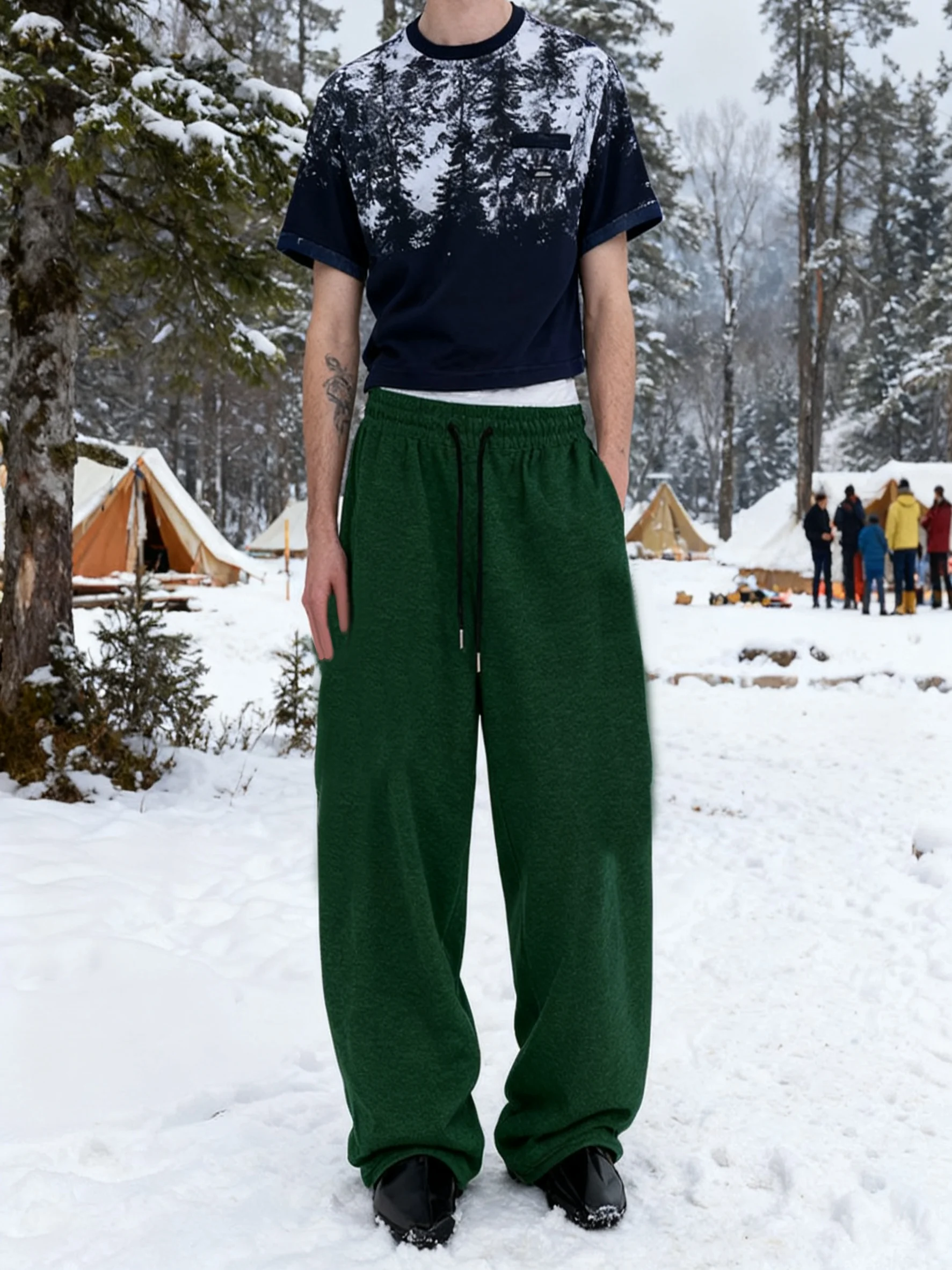 2025 men's sweatpants with drawstring waist, straight leg, wide leg, loose fit, sports pants with pockets