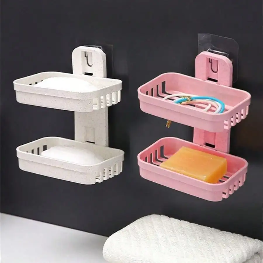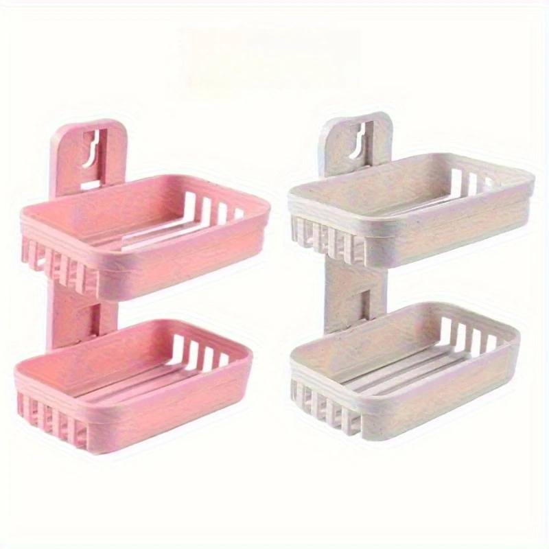 This beige+pink double-layer soap holder, combined with wall mounted bathroom storage and drainage, is a great solution to your problem, ensuring that your bathroom remains clean, organized, and aesthetically pleasing. In addition to storing soap and personal care products, this shelf can also accommodate other essential items such as toothbrushes, toothpaste, facial cleansers, etc. to meet your various storage needs.