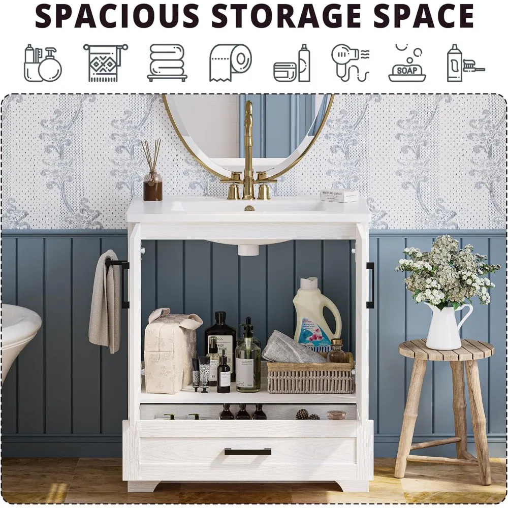 30" Bathroom cabinet with Sink, Featuring one drawer and double-hinged cabinets doors, Easy Assembly, Bathroom cabinet