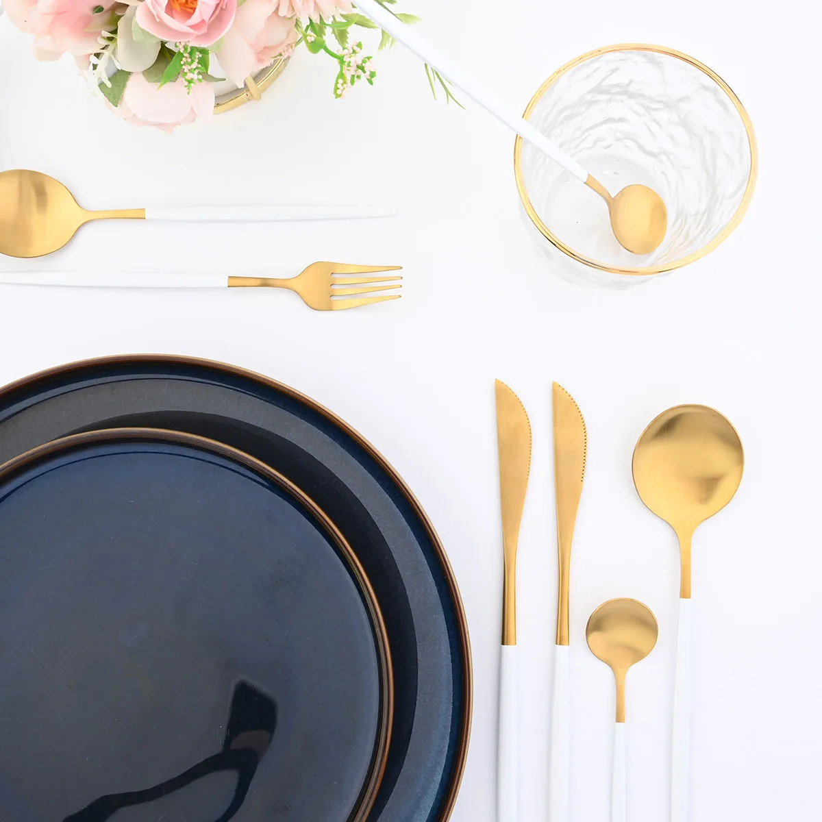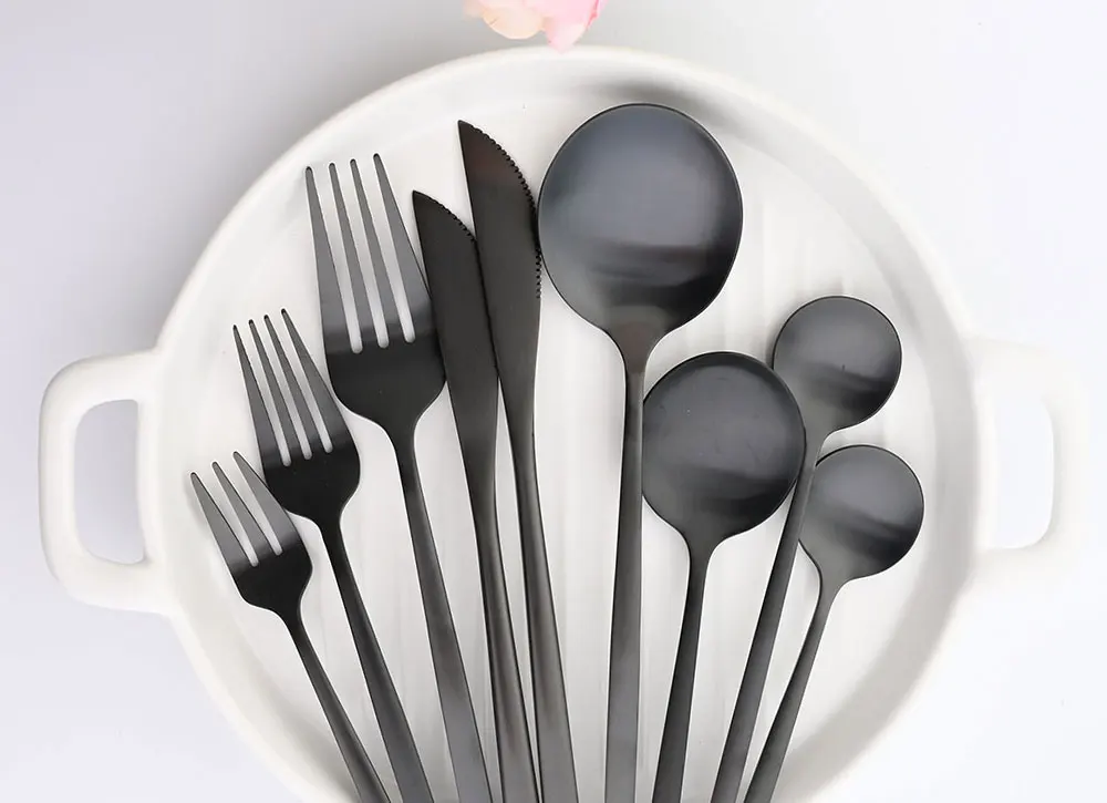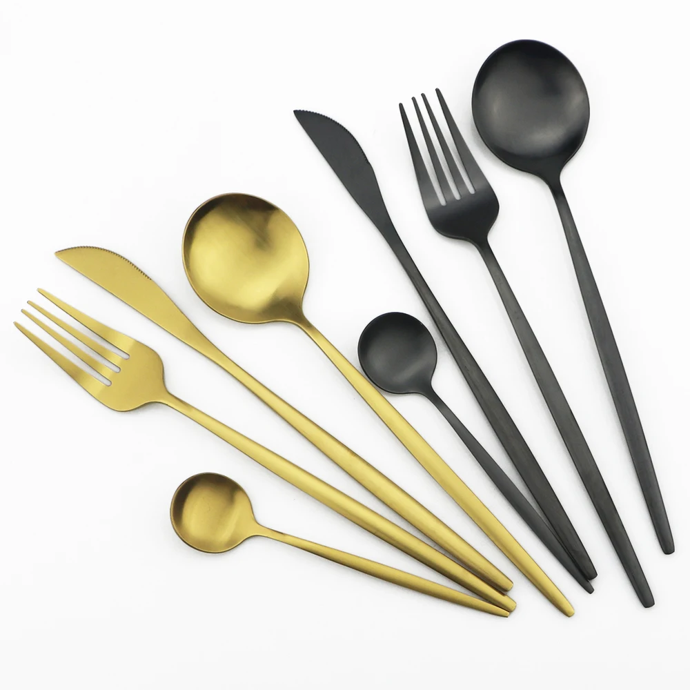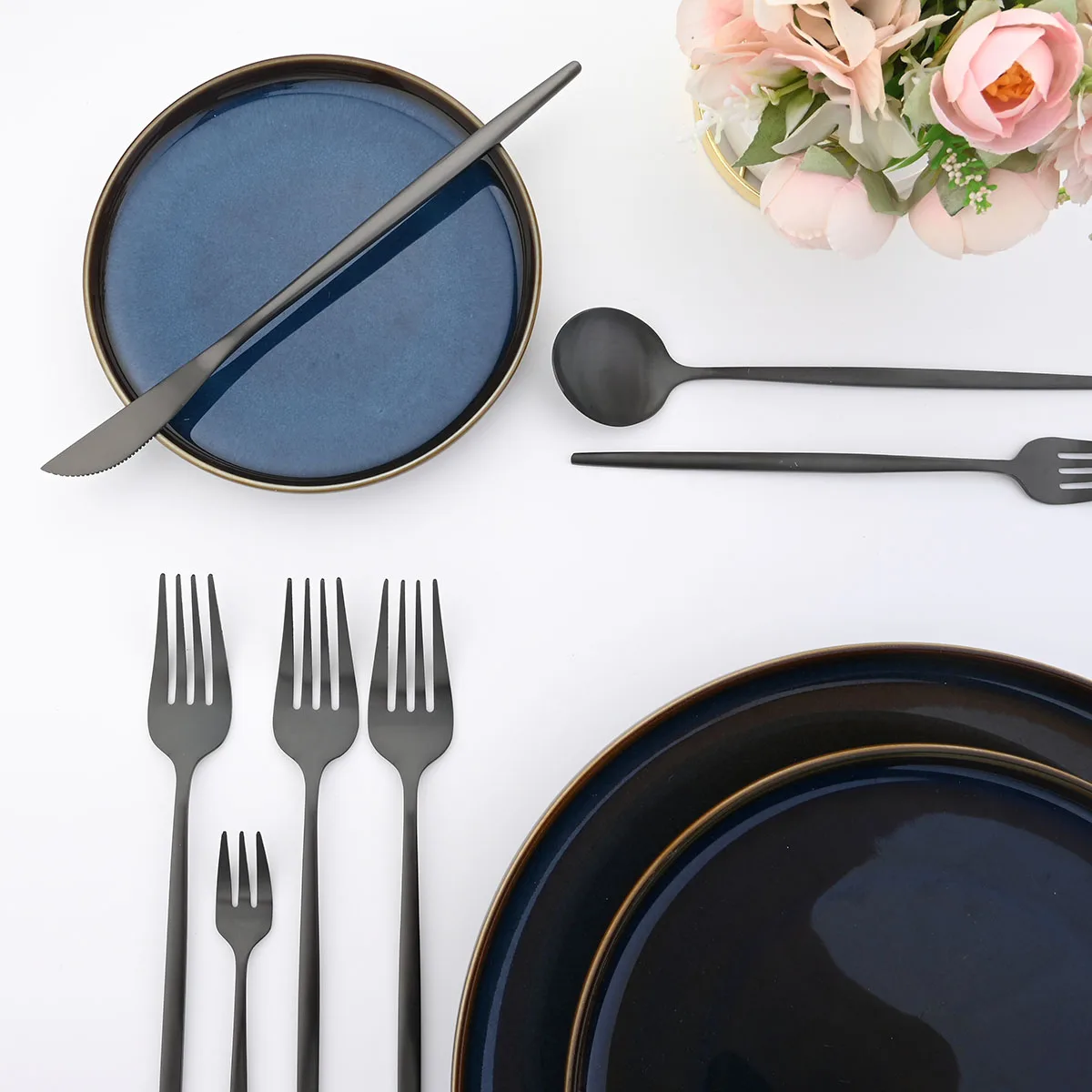 40Pcs Dinnerware Set Matte Black Cutlery Set Stainless Steel Flatware Cake Fruit Fork Kitchen Knife Fork Spoon Tableware Set