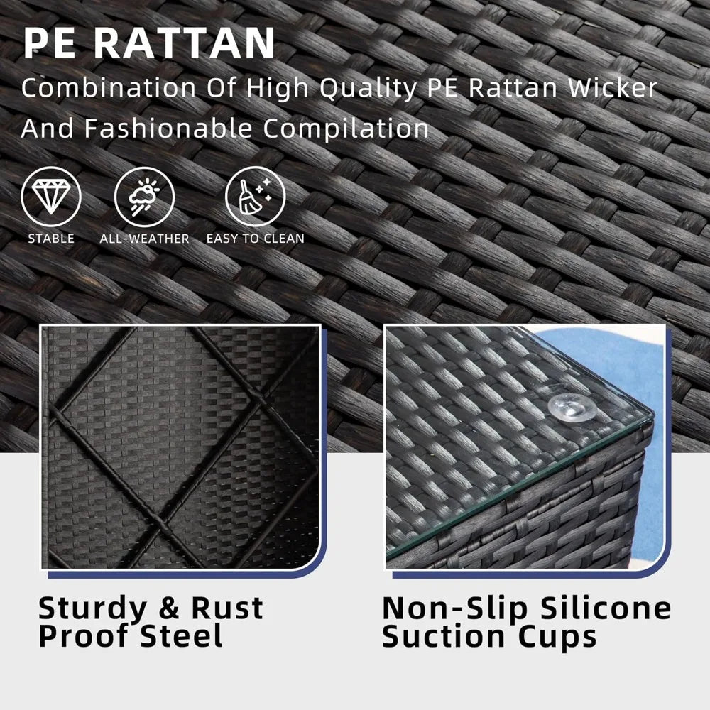 Sturdy Patio Furniture: This modern outdoor furniture set is made of solid powder coated steel frame, rustproof and sturdy; hand-woven resin wicker offers high tensile strength, water resistance, which is strong enough to withstand all-weather variations for long service life. Comfortable Outdoor Couch: Comes with 3-inch thick lofty sponge padded cushions, the modern patio sectional couch providing with extraordinary comfort while relaxing in your leisure time, suitable for entertaining your neighbors or friends. Note: cushions are not water-proof;(When you don' t use it, advise you to take cushions inside or buy a cover for longer service time) Easy Cleaning and Maintain: Our patio conversation set features a water proof wicker and removable tempered glass top for the coffee table, easy for wipe cleaning; zippered cushion covers are made of superior fabric, fade resistant, water spill repellent and washable. Convertible Patio Set: Each part of this 5- piece patio furniture could be used separately, easily allowing to be combined into different configurations according to your needs. Ottoman also can be an extra seating or part of a chaise lounge; Ideal for outdoor patio, porch, backyard, balcony, garden and poolside. Assembly and Support: The patio furniture set includes: 1 x armless sofa, -2 x corner sofa, 1 x ottoman, 1 x coffee table.If there is any problem, please feel free to contact us(Login to your amazon account>choose "Your orders" > find the order ID > click"Contact seller"). Item dimensions: 77 x 26.7 x 24.8 inches. The product is not large, please be careful with the size!
