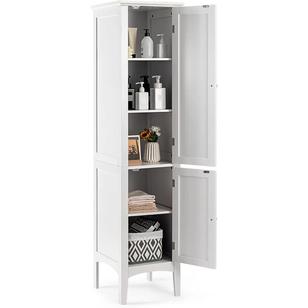 5-Tier Freestanding Bathroom Linen Tower with Wooden Sides and 2 Doors Storage Cabinet