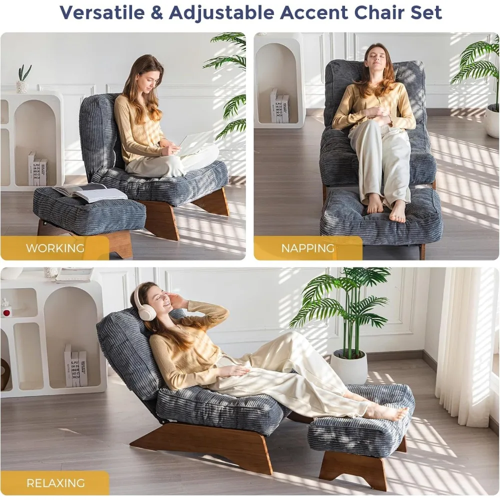Accent Chair with Ottoman Adjustable Backrest, Tufted Living Room Chair Upholstered Lounge Chair with Footrest Set, Modern Chai