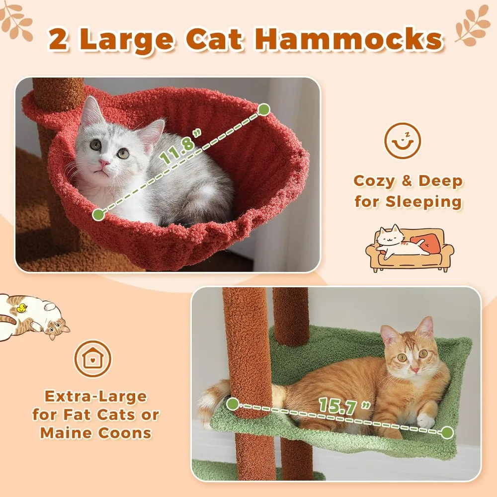 Adjustable Height Cat Tower: 90.5 to 100.4 Inches, Mushroom-Top Climbing Tree with Scratching Posts and Spacious Perch