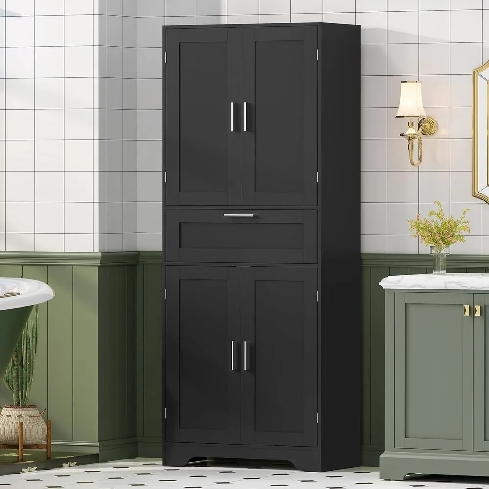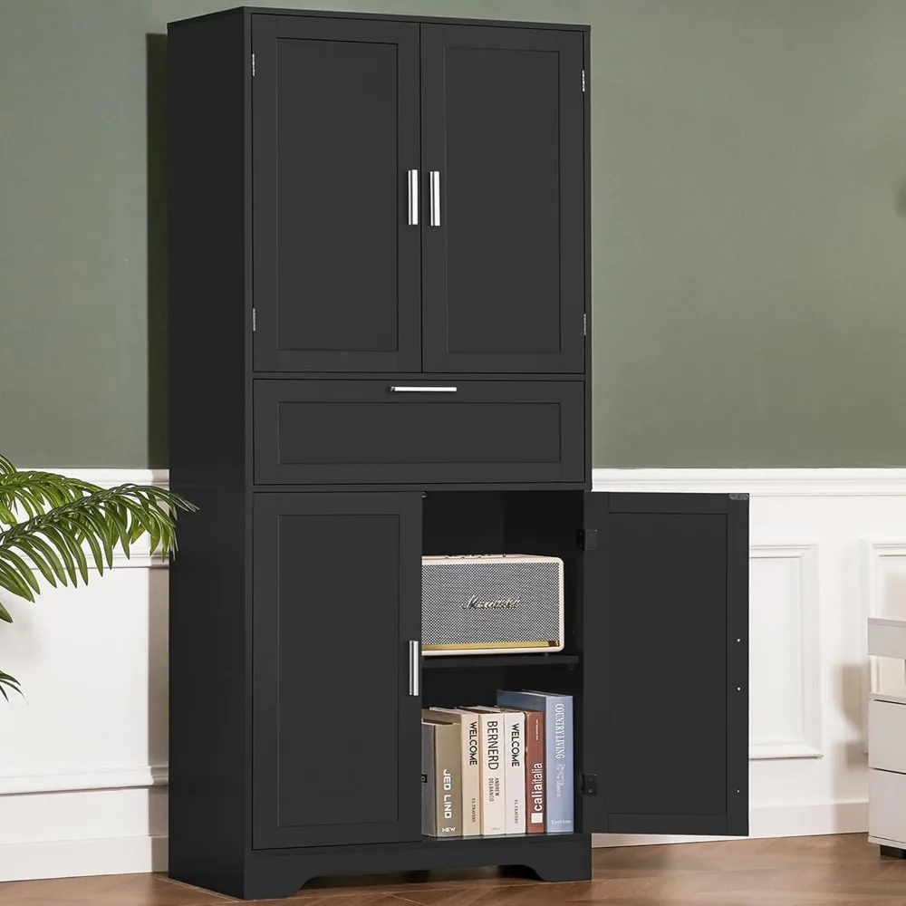Adjustable Shelf Tall Storage Cabinet, Black Drawer Cabinet, Dining Room Bathroom Storage Solutions