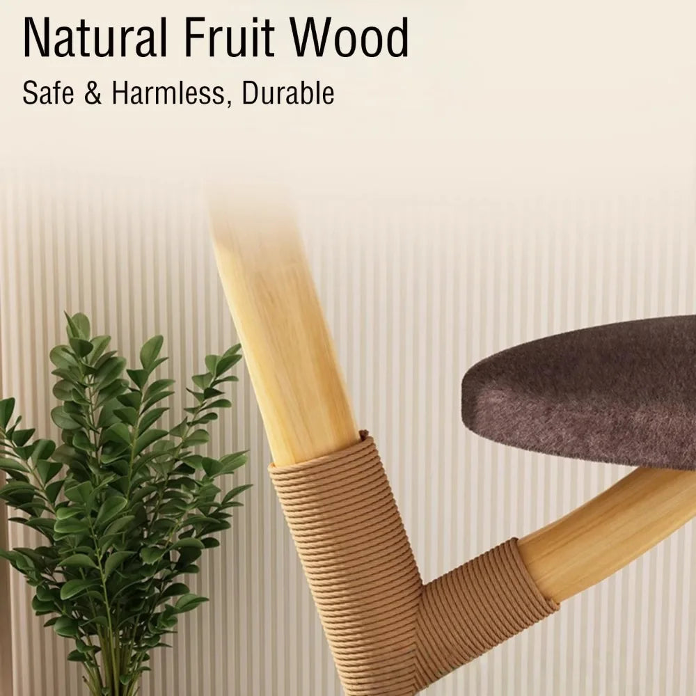 All-Season Multi-Level Solid Wood Cat Climbing Tree with Space Capsule Condo - Space-Saving Home Natural Trunk Design
