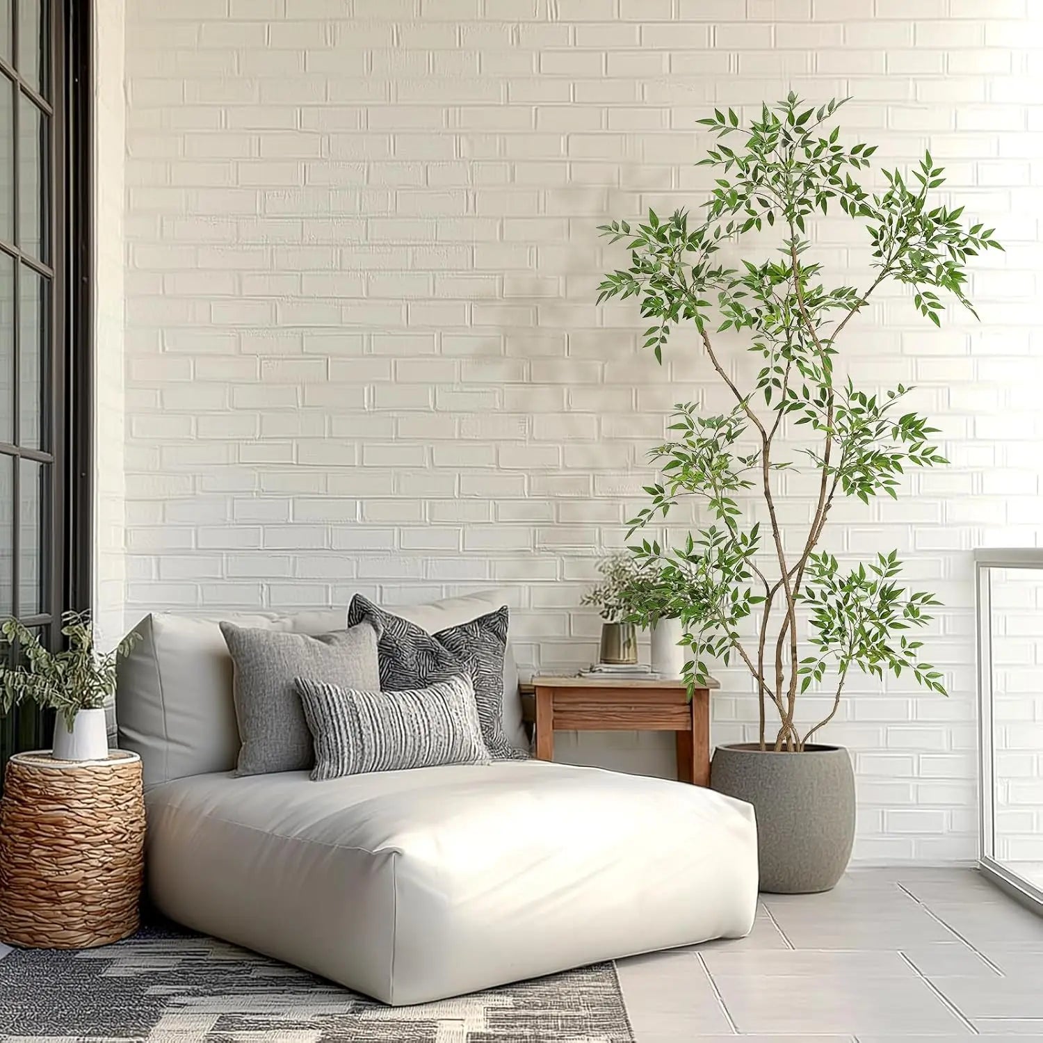 --- Versatile Indoor & Outdoor Décor: Ideal as a large artificial plant indoors or on covered balconies, this tall fake plant effortlessly enhances living rooms, offices, or patios with greenery that never wilts or fades, creating a welcoming and stylish environment.