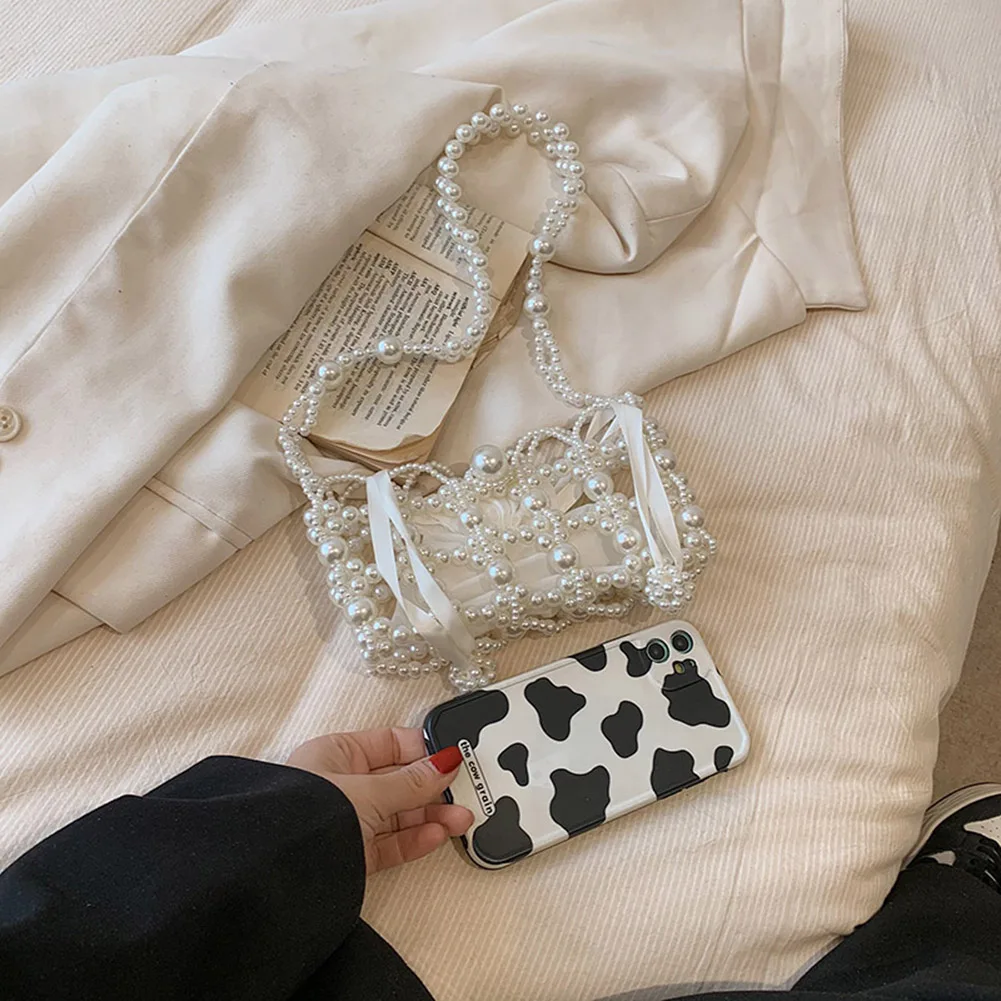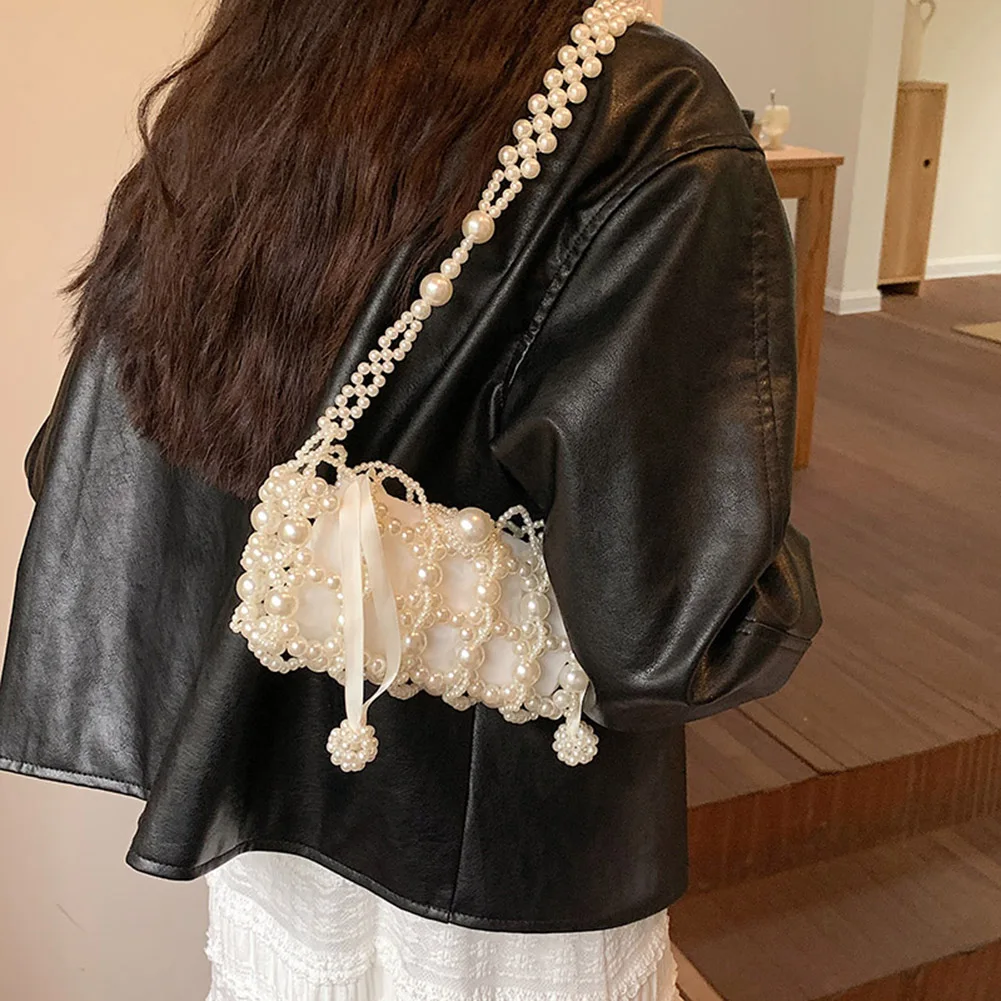 Feature: Specification: _x000D_ Origin: _x000D_ Shape: Satchels _x000D_ Material: Imitation pearl _x000D_ Inner lining: polyester _x000D_ Handbags Type: Shoulder Bags _x000D_ Number of Handles/Straps: Single _x000D_ Decoration: Beading _x000D_ Style: Fashion _x000D_ Department: WOMEN _x000D_ Pattern Type: Hollow Out _x000D_ Closure Type: OPEN _x000D_ Interior: No Pocket _x000D_ Exterior: NONE _x000D_ Model Number: Shoulder Bag _x000D_ Occasion: Versatile _x000D_ Size: (Optional) Style 1:18x10x4cm/7.09x3.94x1.57in, Shoulder strap length approximately 106cm/41.73in, Style 2:18x10x4cm/7.09x3.94x1.57in, Shoulder strap length approximately 58m/22.83in _x000D_ Usage: single shoulder, crossbody, handheld _x000D_ Note: The shoulder strap is not adjustable _x000D_ Place Of Origin: HE BEI Province _x000D_ _x000D_ _x000D_