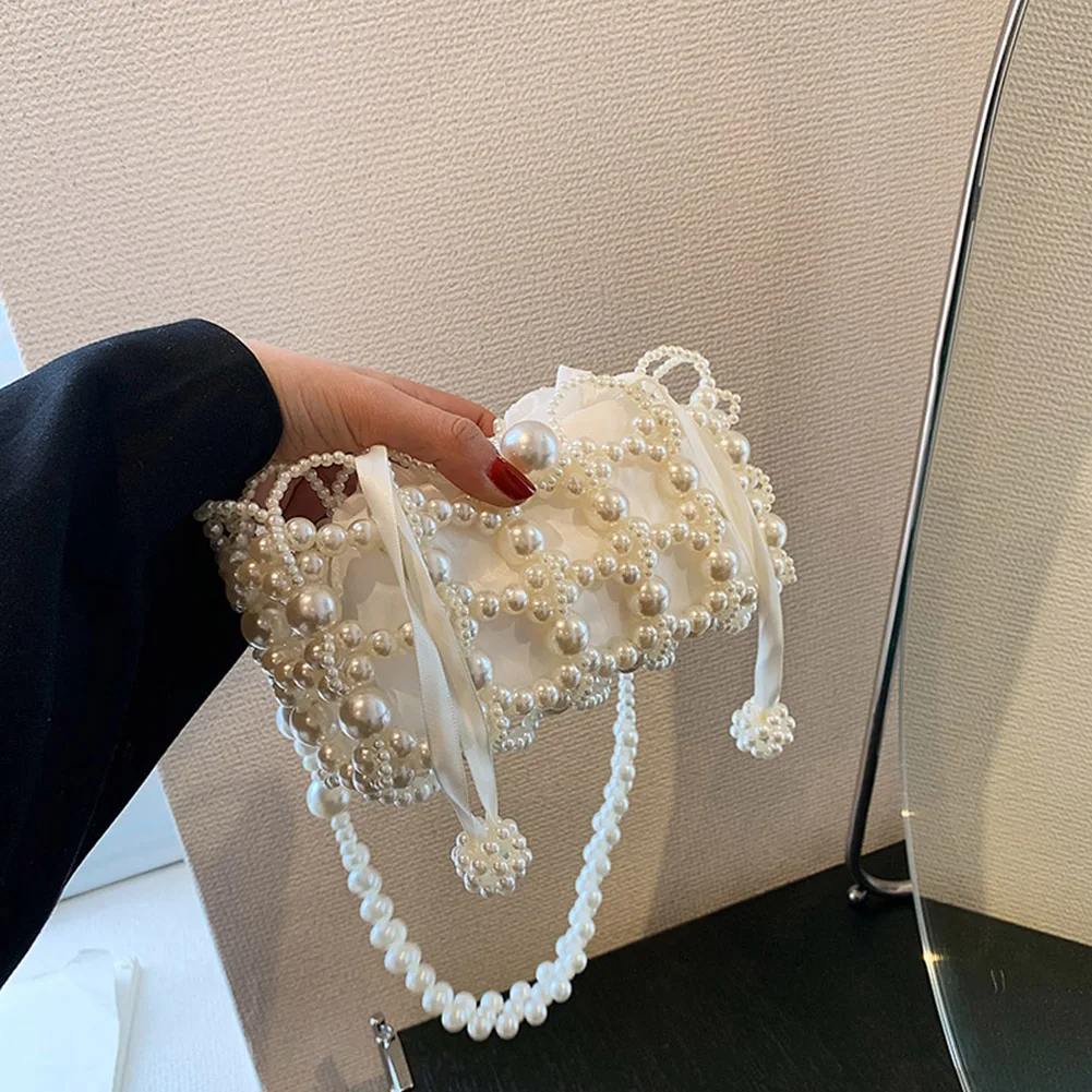 Beading Underarm Bag Handmade Beaded Women Evening Messenger Bags Retro Pearl Exquisite Elegant Shiny Banquet Party Bag