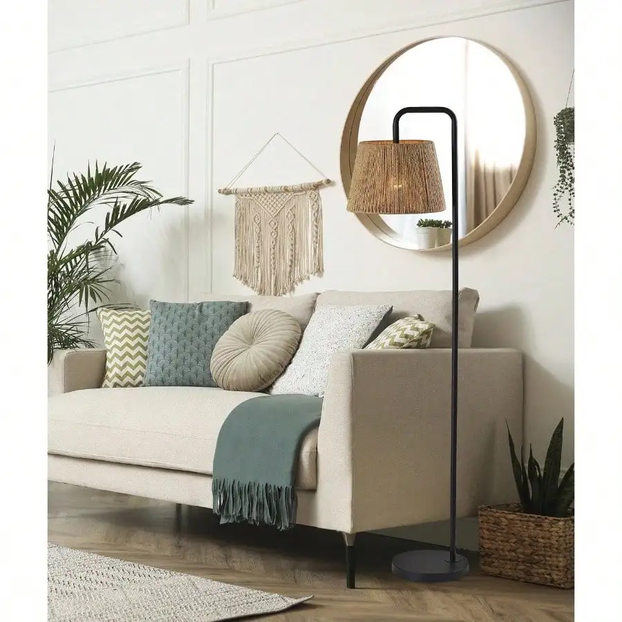 Mainstays Black Metal Floor Lamp with Rope Shade will add natural texture and effortless style to any room. An eye-catching lighting accent of mixed materials your living room, bedroom, office, dorm room, reading nook, and more. This floor lamp is 59 inches tall with a sturdy weighted round metal base and offers an easy to use on/off rotary switch. It uses a 100W incandescent bult or LED equivalent (bulb not included)