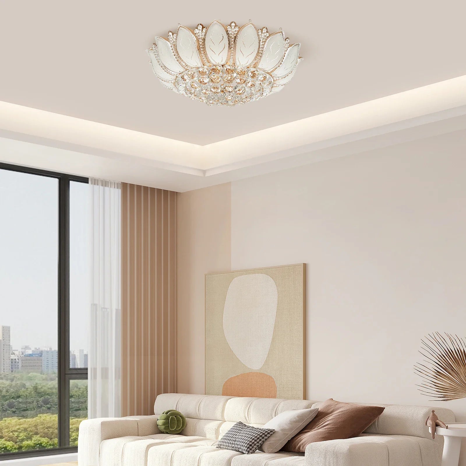 Bright light can bring charm and warmth to your room, and light up your life. Made of premium metal, ABS, and crystal, this ceiling light is strong and durable. It can create a bright light to brighten your life and will be a great addition to your house. A simple structure and smooth surface allow for easy cleaning and installation. It is an excellent gift for your friends and family for housewarming.
