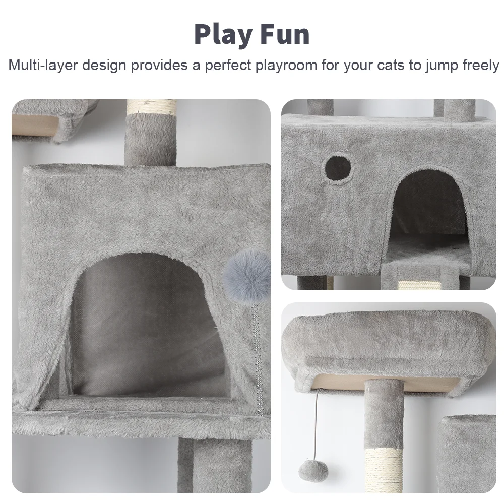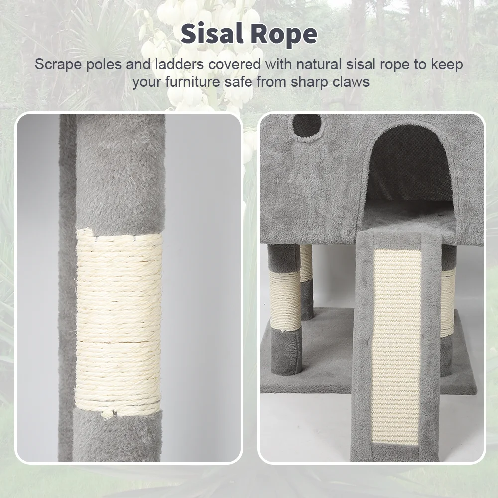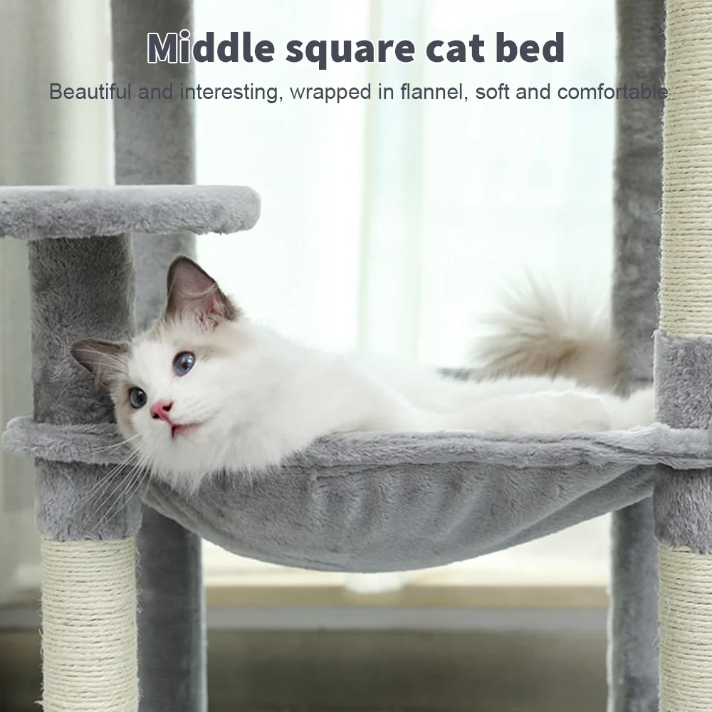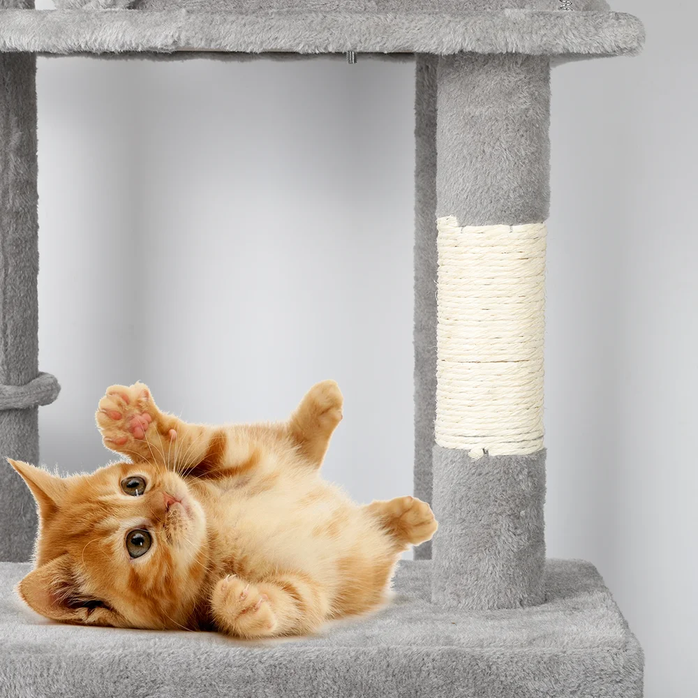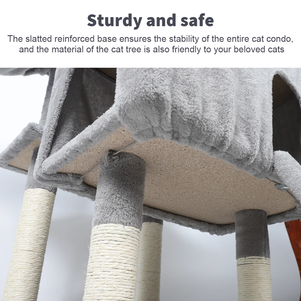 Stability is the Primary Consideration for A Cat Tower: Sturdy cat climbing frame base, sisal wrapped scratch posts and Anti-toppling devices ensures the security of active kittens and cats playing on the activity centre