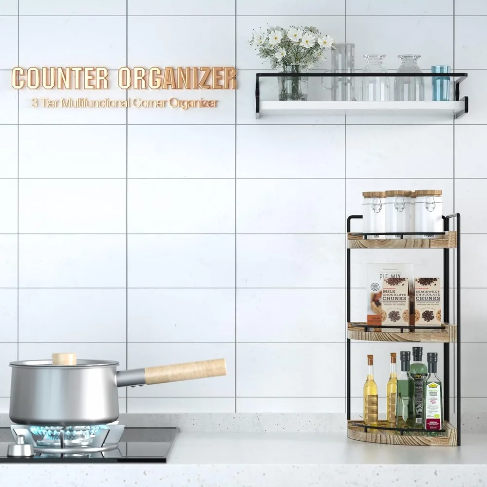 - 90° Corner Fit- Designed to fit snugly in corners, this corner counter shelf saves space and keeps your restroom or kitchen tidy; It is equipped with metal holder for effortless relocation, making it convenient to put different space as needed