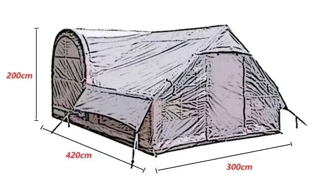 Excellent Ventilation: The blow up tent is is shaped like a small house and equipped with high density mesh windows for good convection ventilation and privacy and door for easy access from different directions. For Four-season: The inflatable tents for camping is made of cotton cloth and sturdy frame, durable and practical to use. Slightly Rain-proof、snow-proof, UV -proof, wind-proof and insect resistant. For a great outdoor experience, we recommend using it in good weather conditions. This tent in spring, summer, autumn and winter is enough, surprised to be practical. |