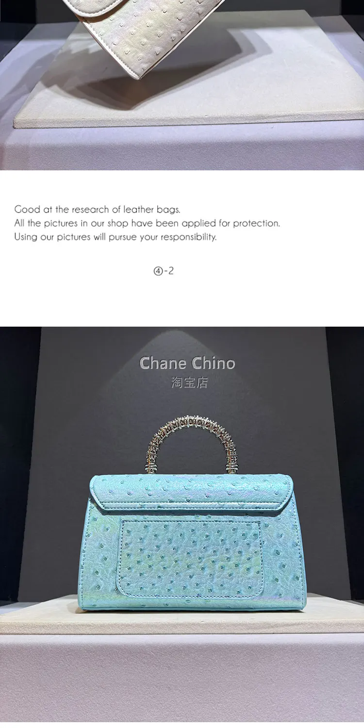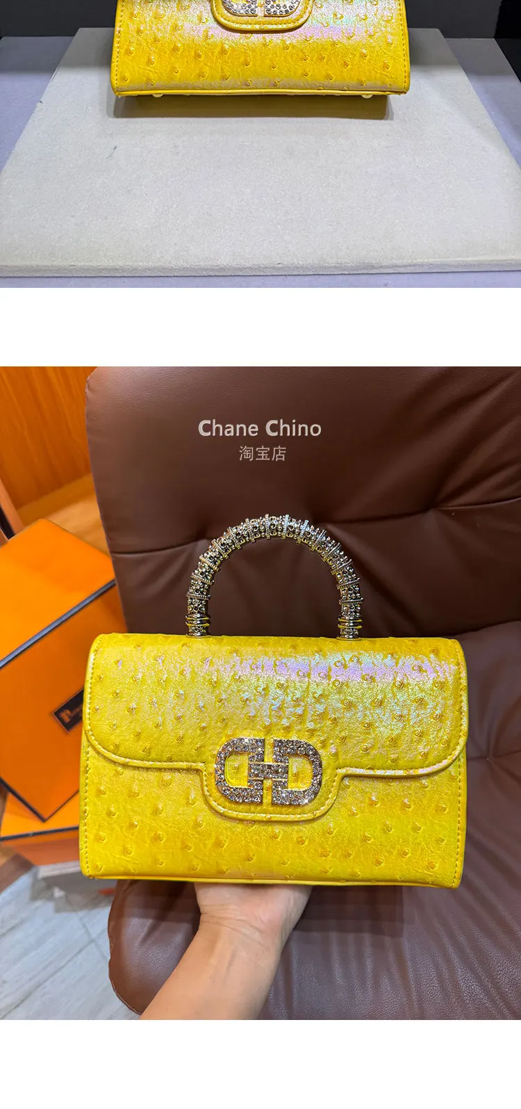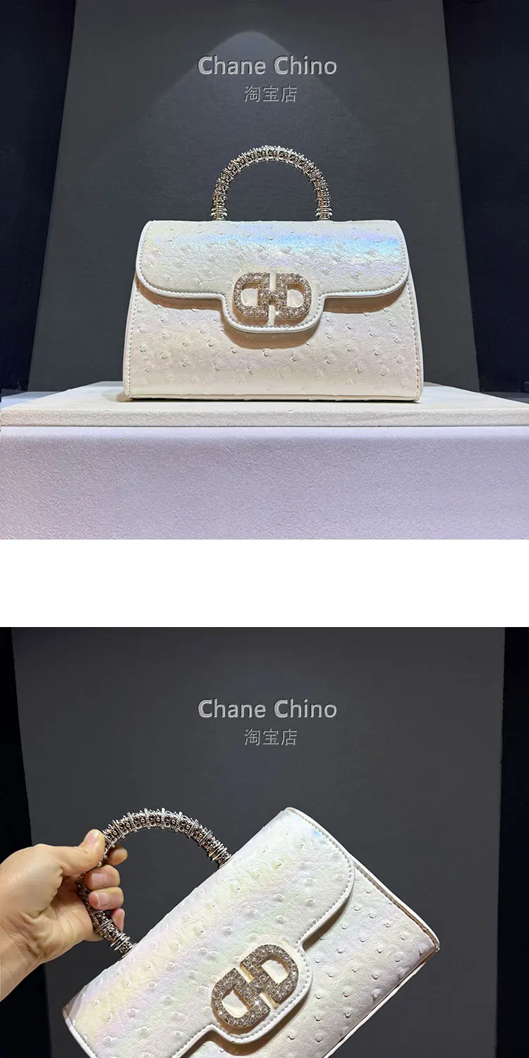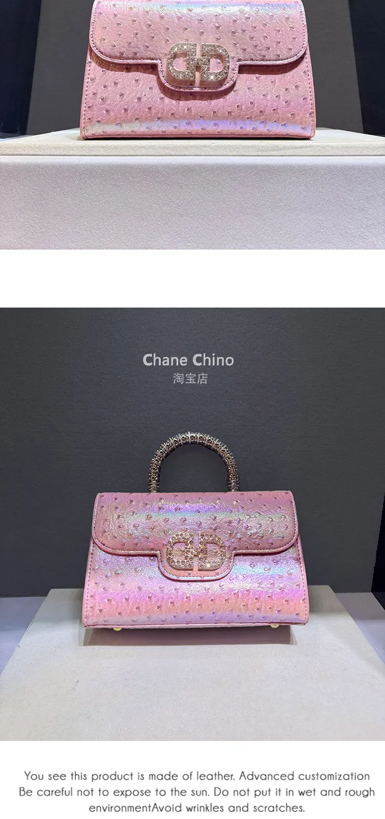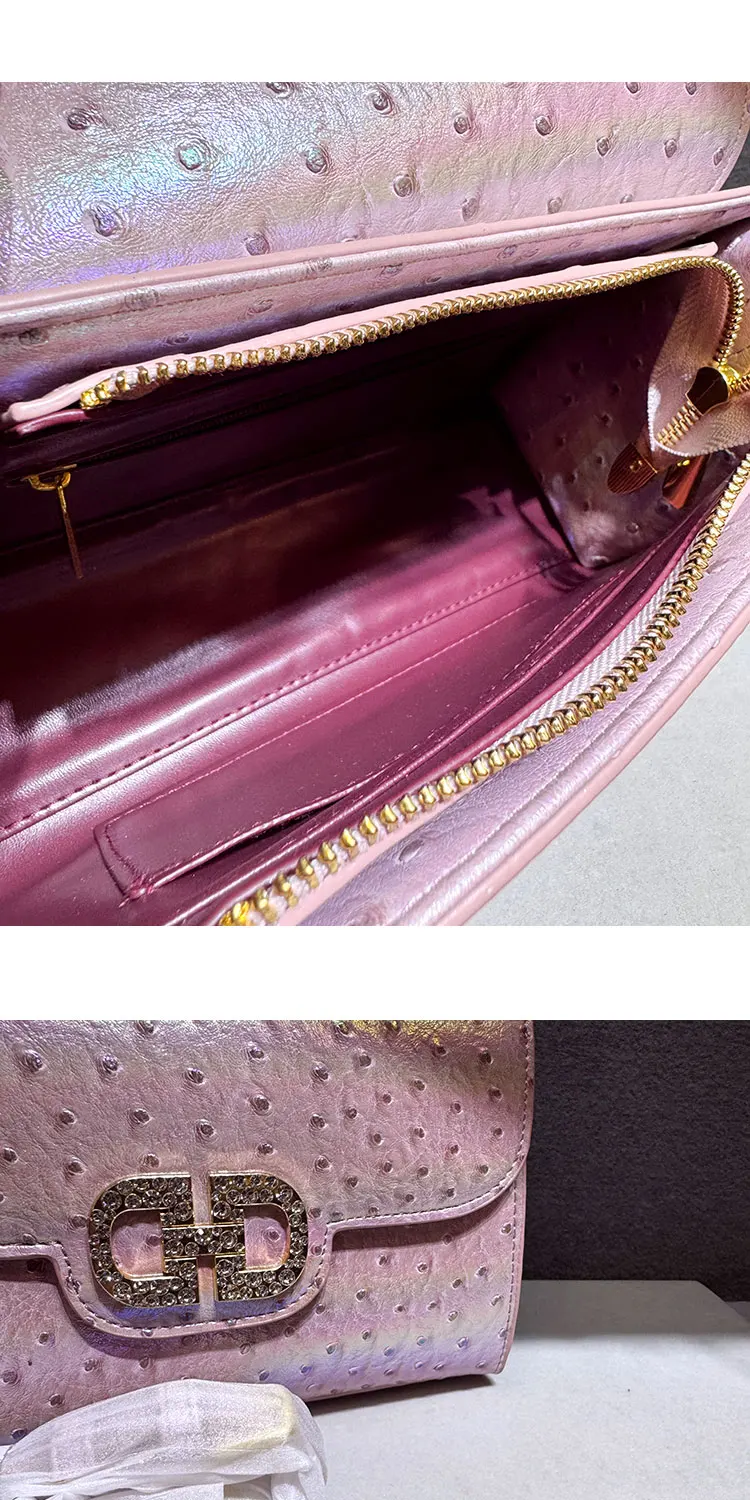 Diamonds Ostrich Pattern Leather Women's Handbags 2025 Spring/Summer New Tote Bag Single Shoulder Crossbody Bags