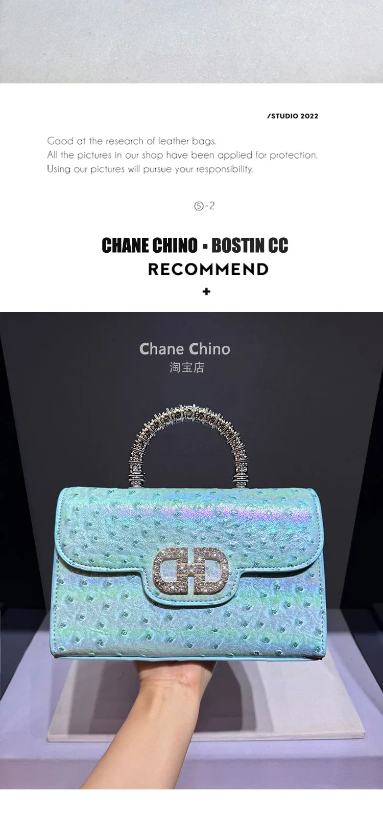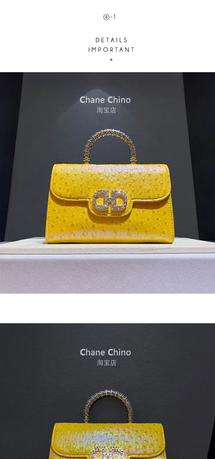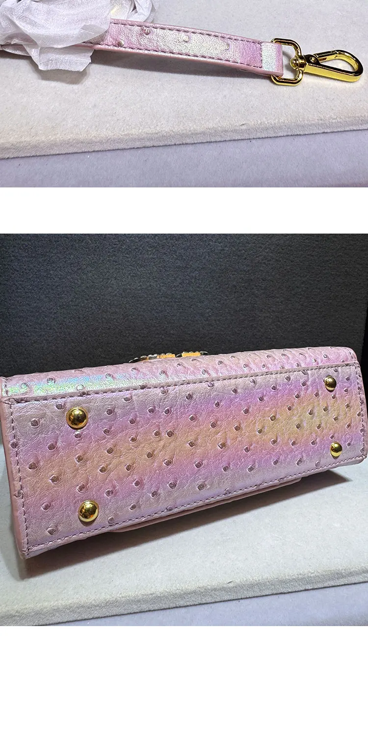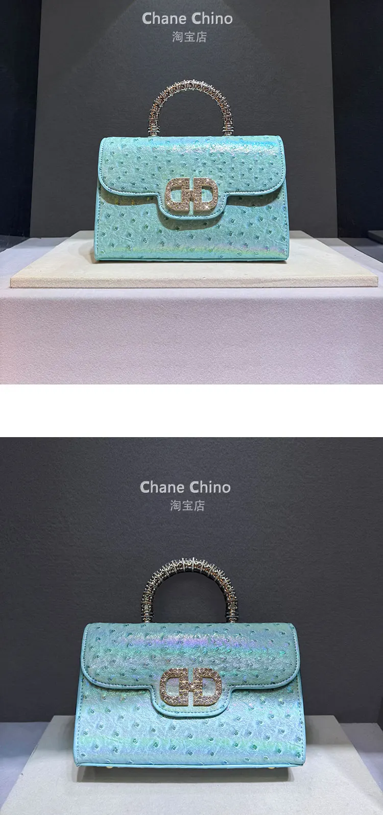 Diamonds Ostrich Pattern Leather Women's Handbags 2025 Spring/Summer New Tote Bag Single Shoulder Crossbody Bags