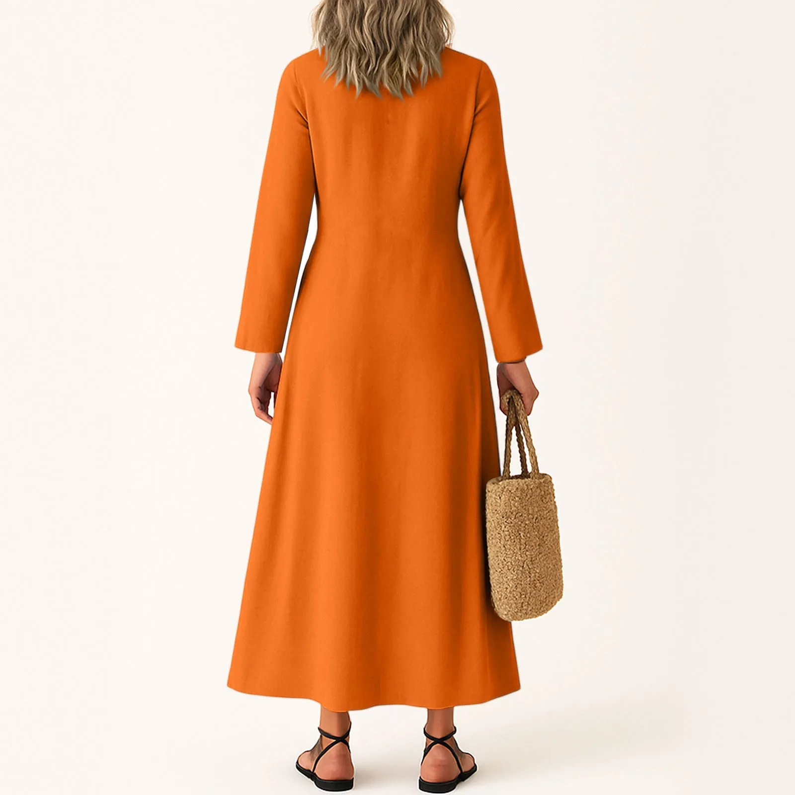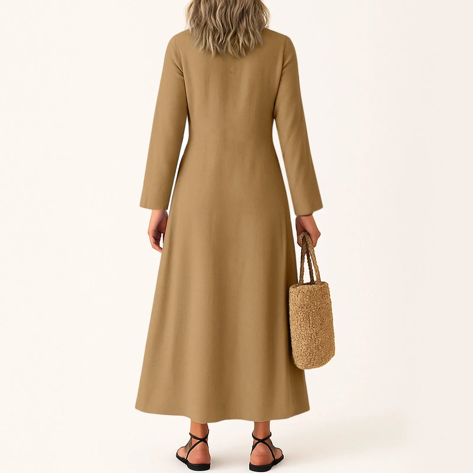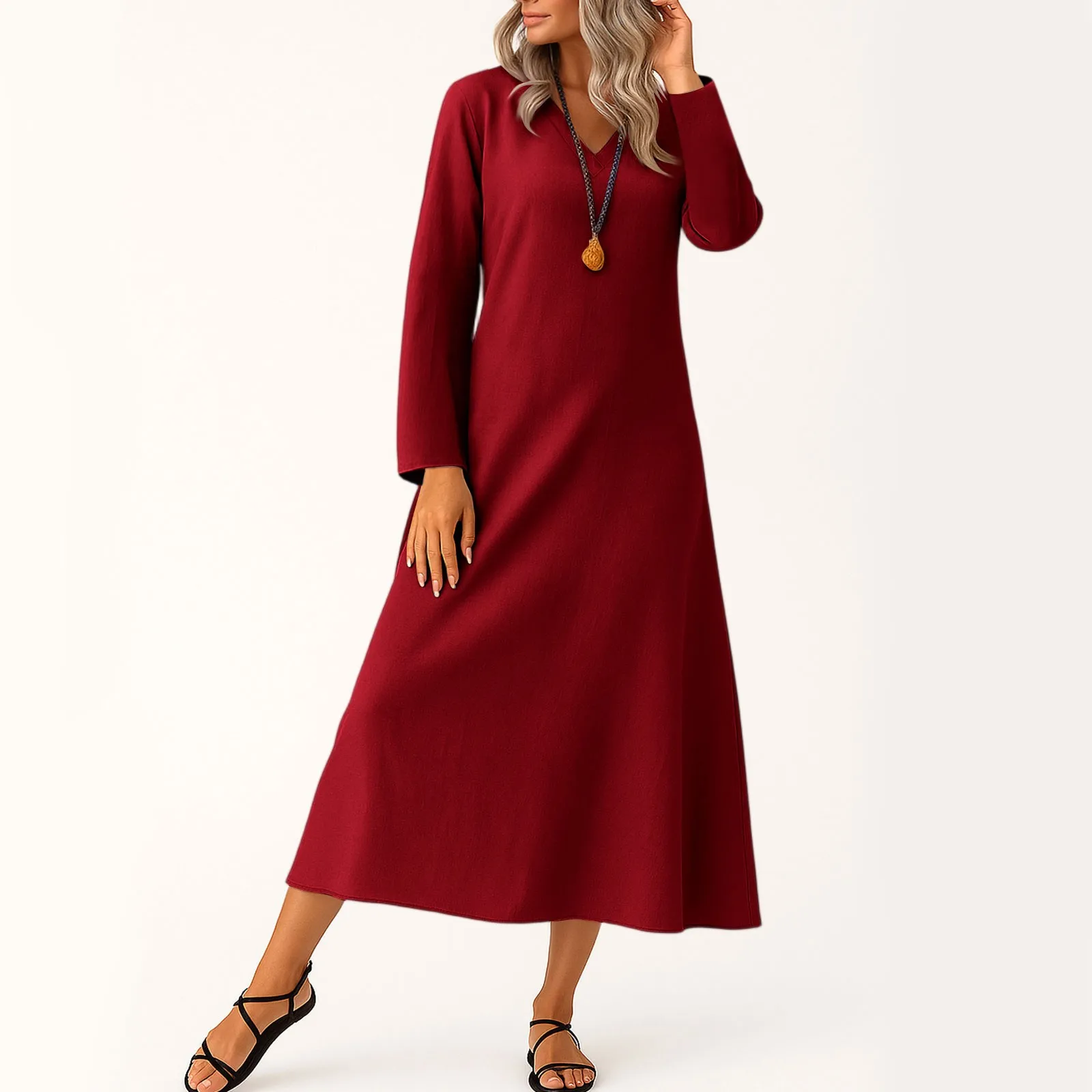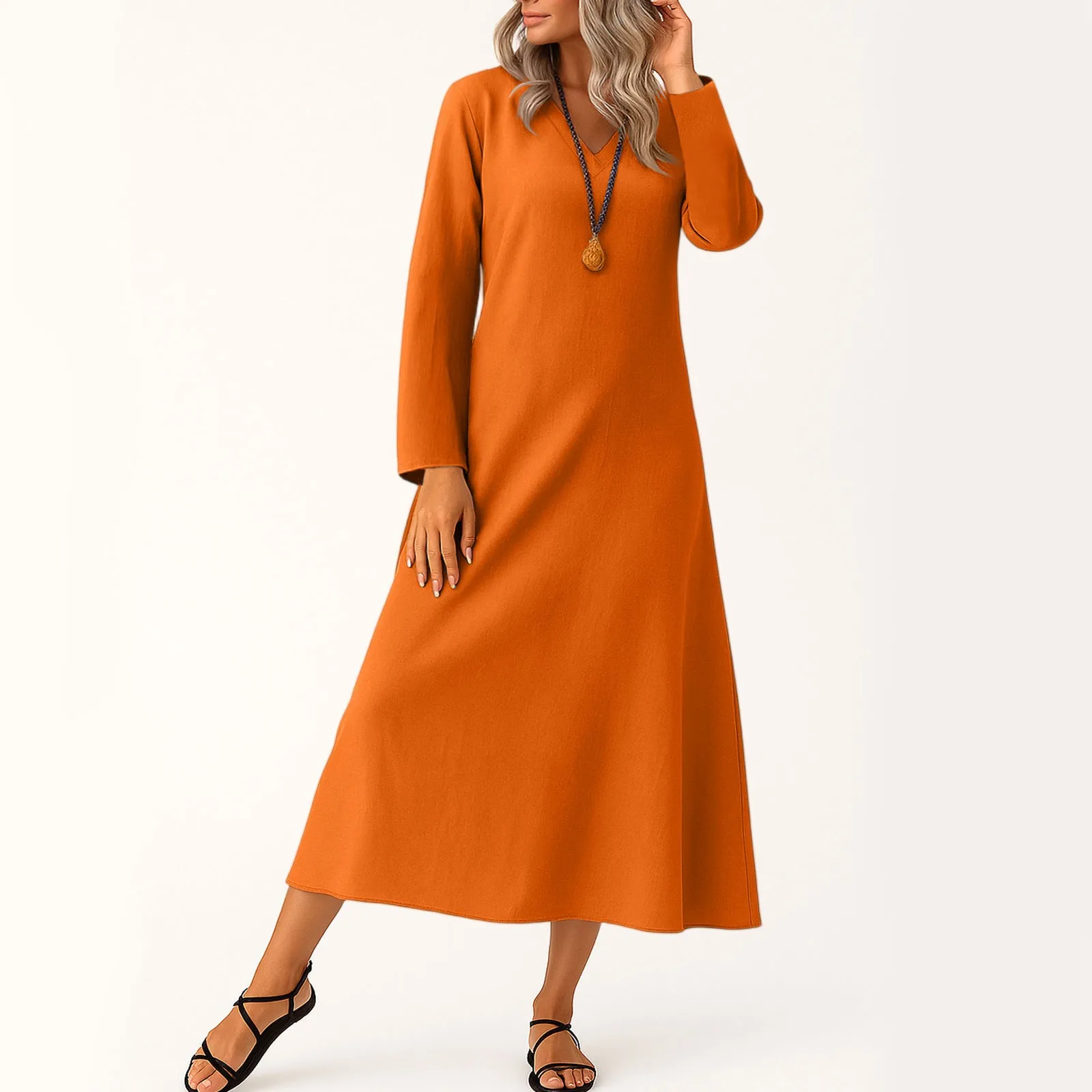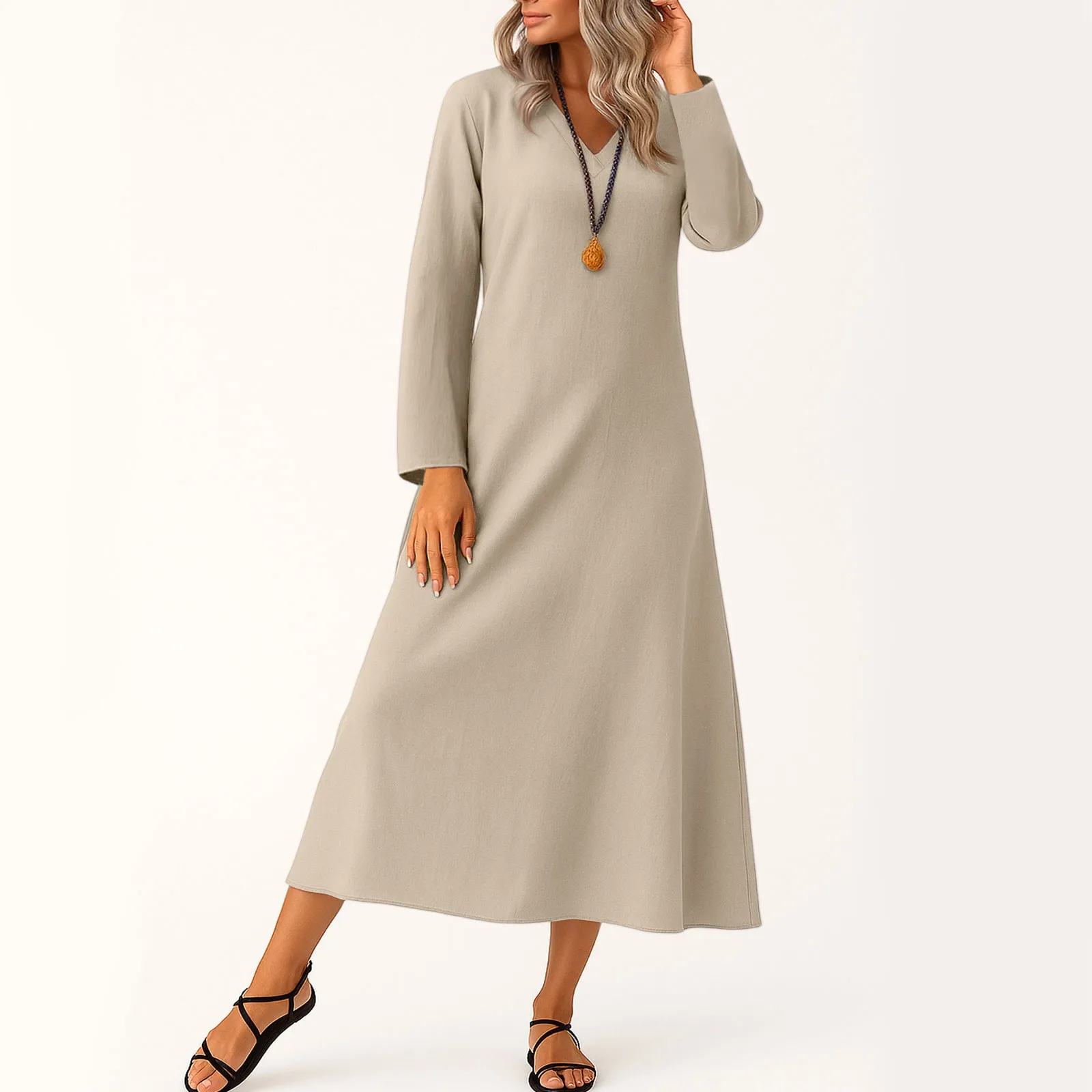 Dress For Women Long Boho Beach Dress Elegant Maxi Dress V-Neck Long Sleeve Dress With Pockets
