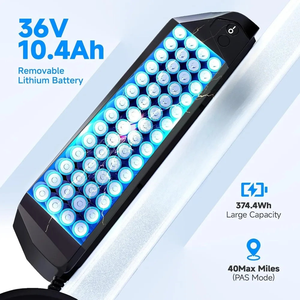 - 【Long Range Removable Battery】Victor electric commuting bike featured with a 374.4 Wh battery,which covers a range of up to 25-40 miles per charge for 4-5 hours so that it can meet travel or daily commute needs. Removable battery makes charging more convenient whether you are at home or in the office