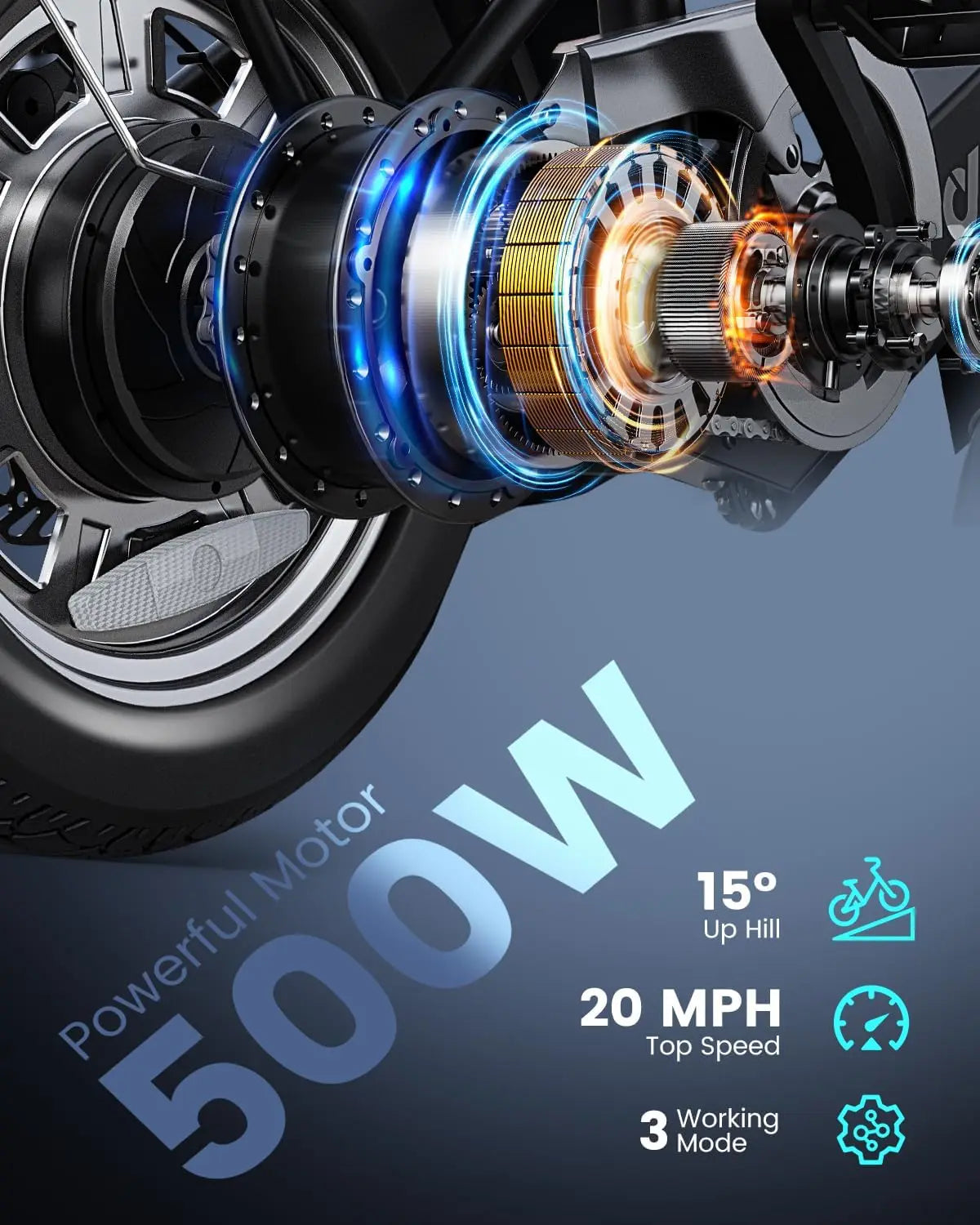 Super Cost-effective Commuting: DYU electric bike is equipped with a powerful 500W motor and 36V 7.8Ah lithium battery to enhance your riding experience with speeds up to 20 mph
