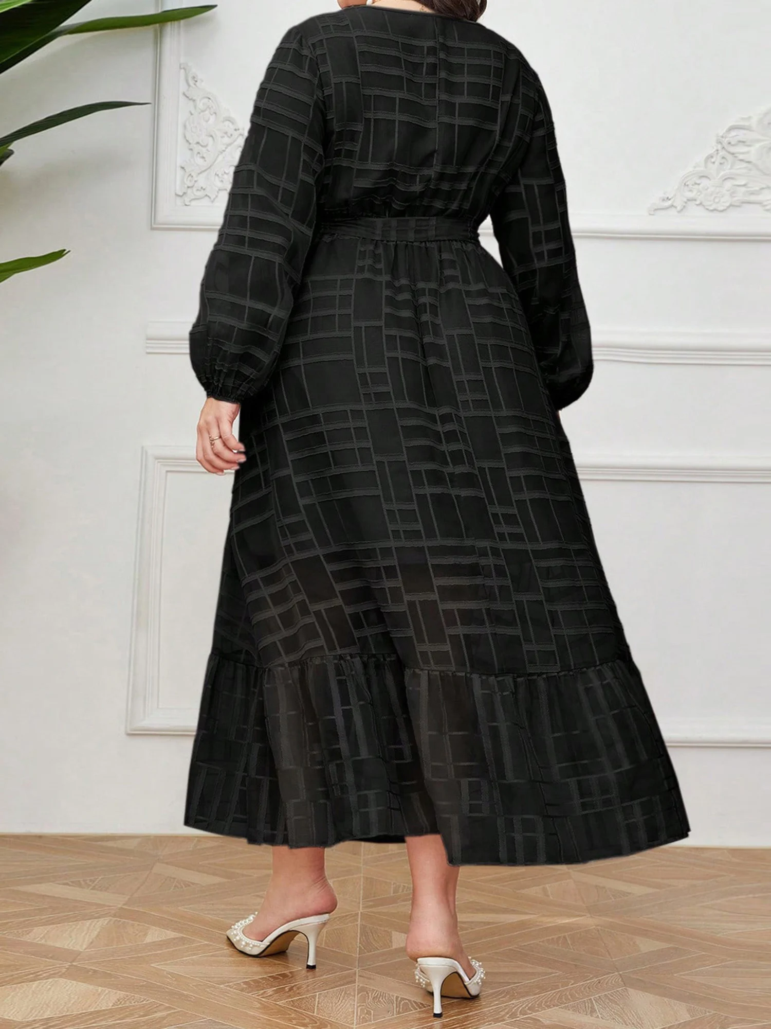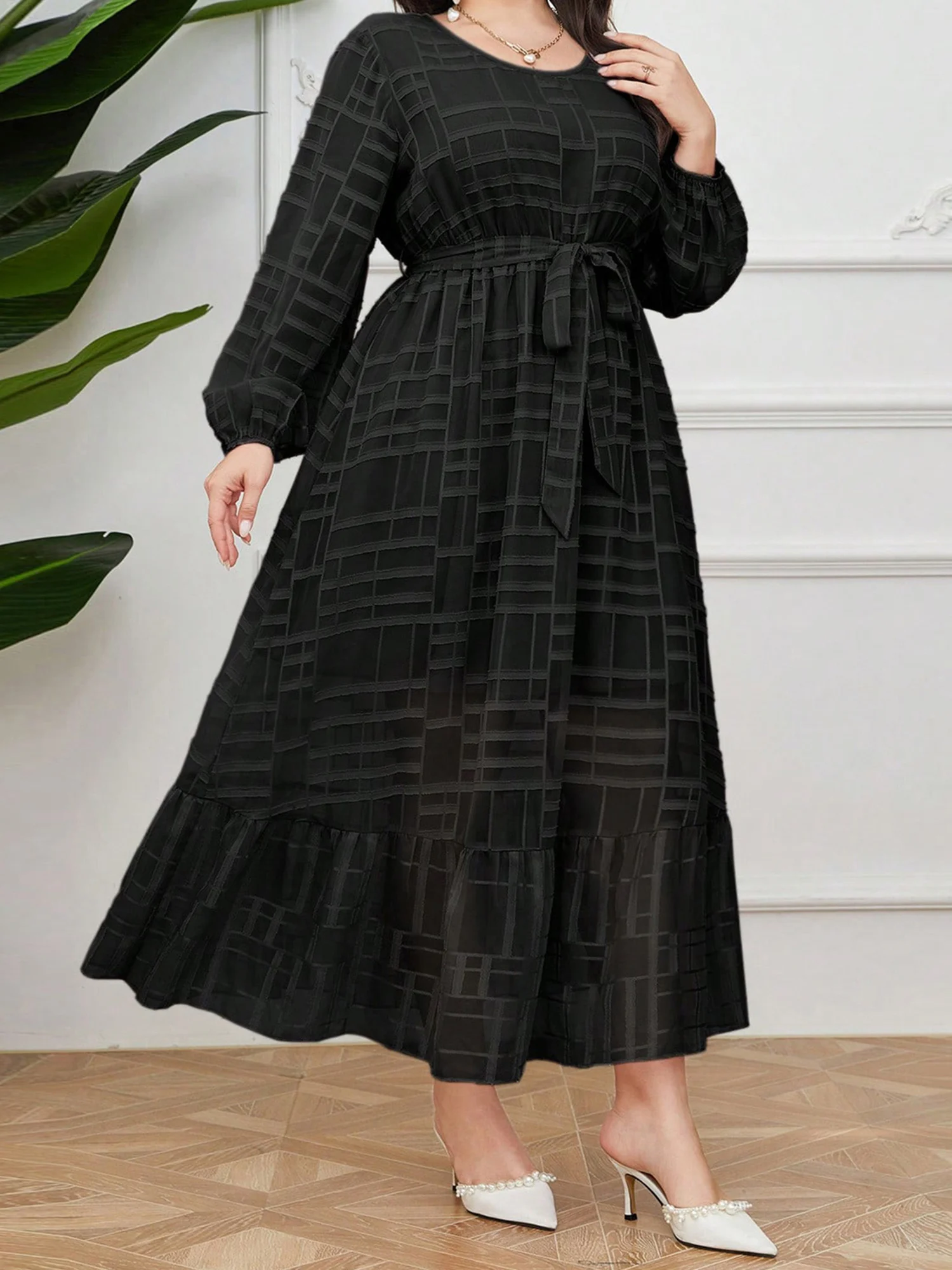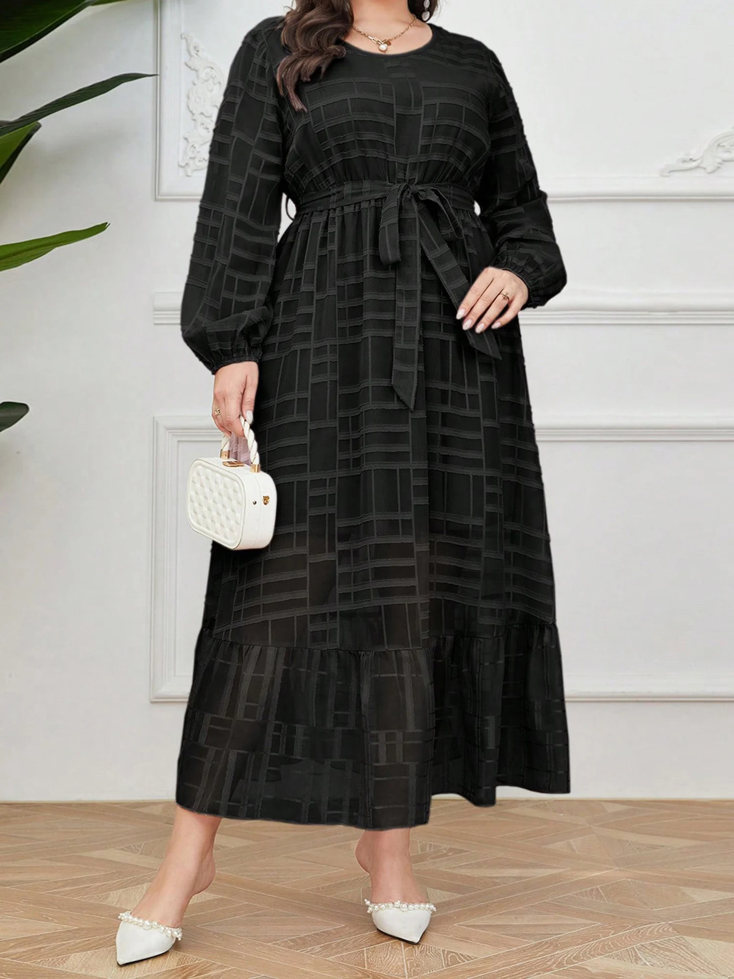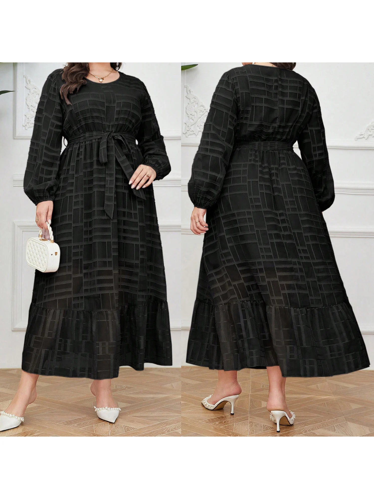Women's Plus Size Long Dress Fashion Print Round Neck Long Sleeve A-Line Dress with Belt for Daily Party TravelSize (cm)