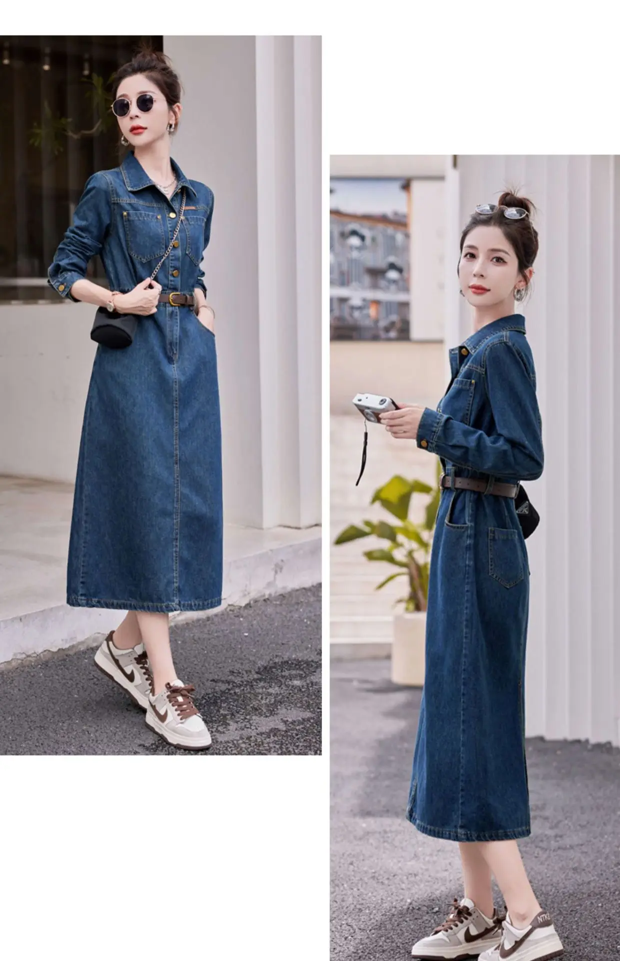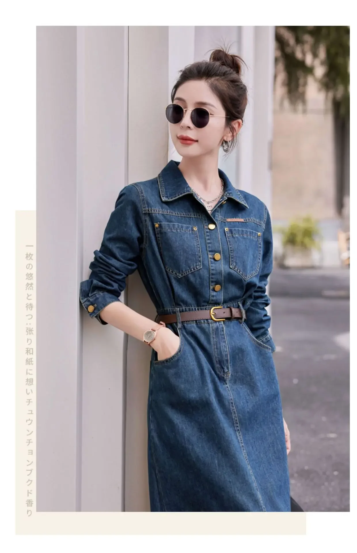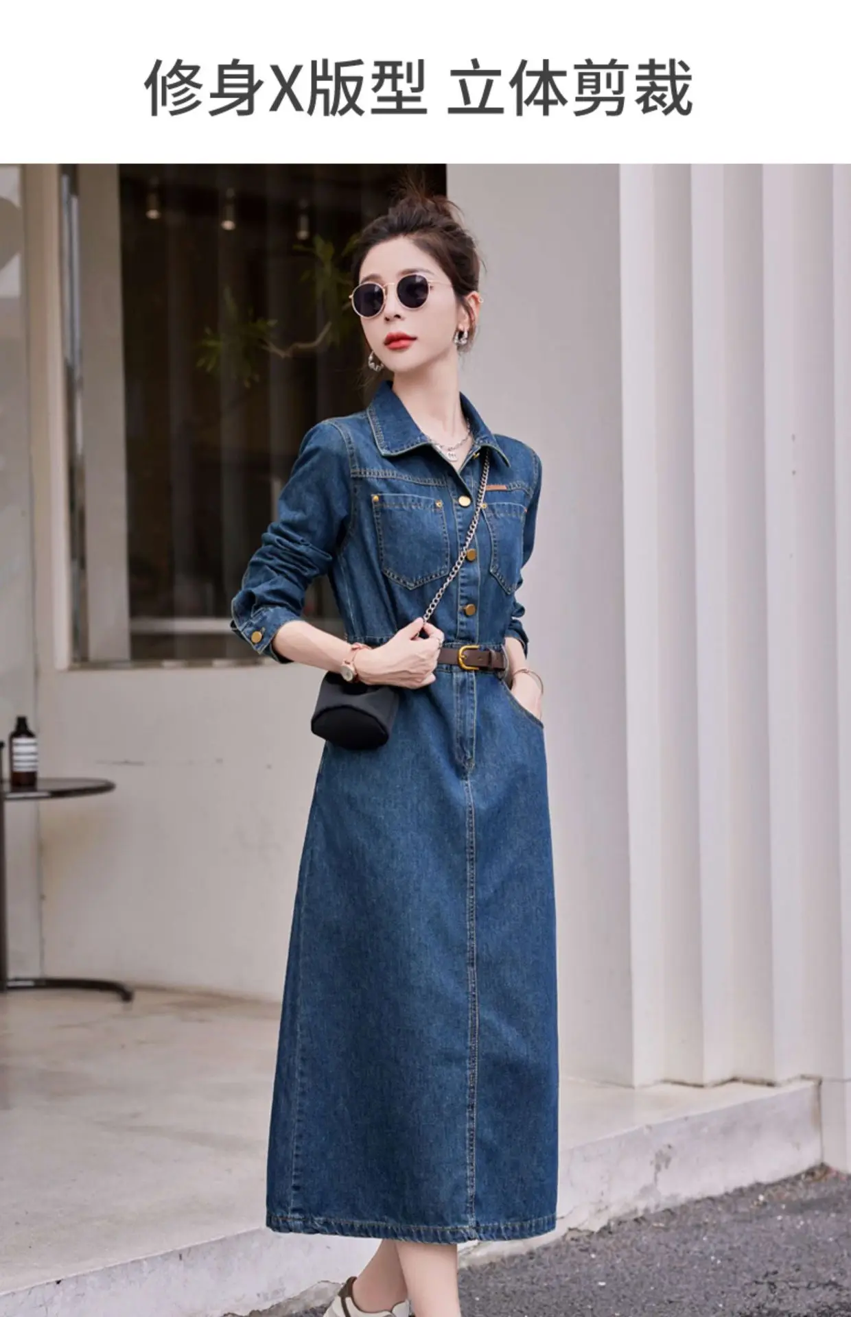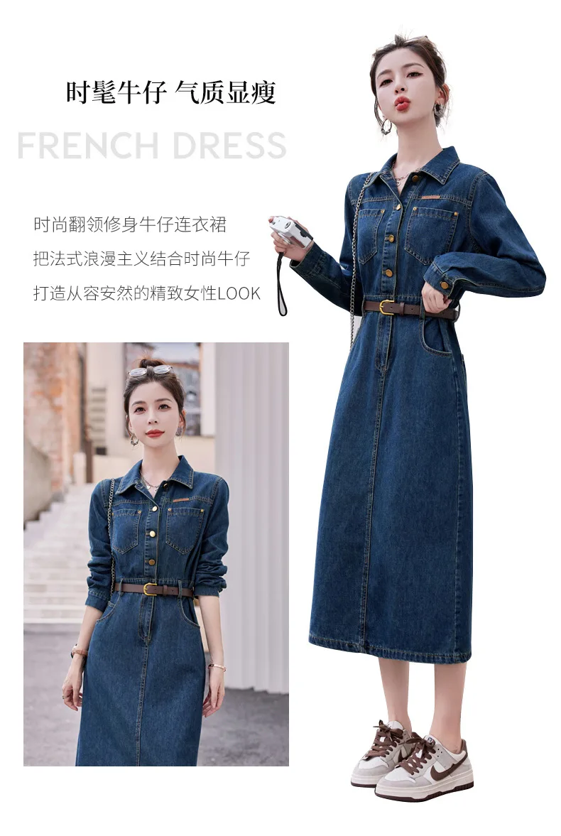 Fashionable Long Sleeve Denim Dress Women Spring Autumn New High End Elegant Casual Slimming Shirt Style Ankle Length Dress