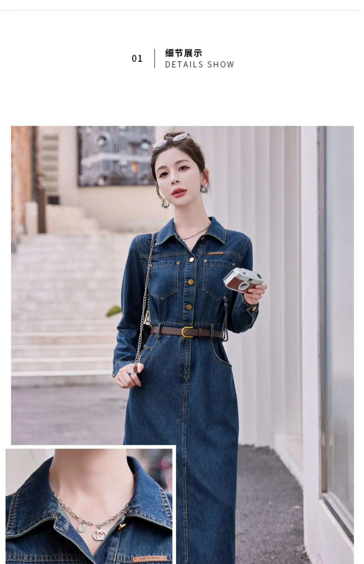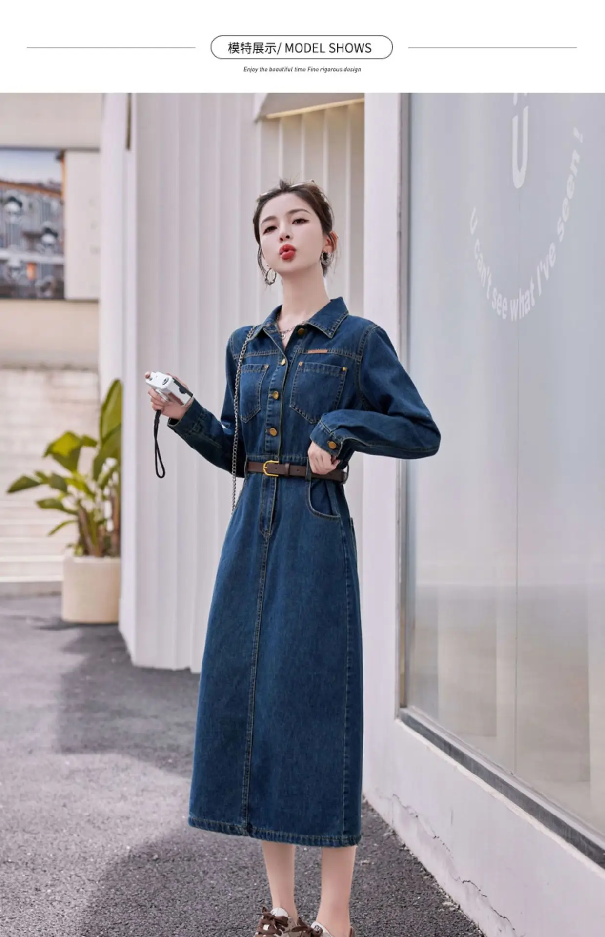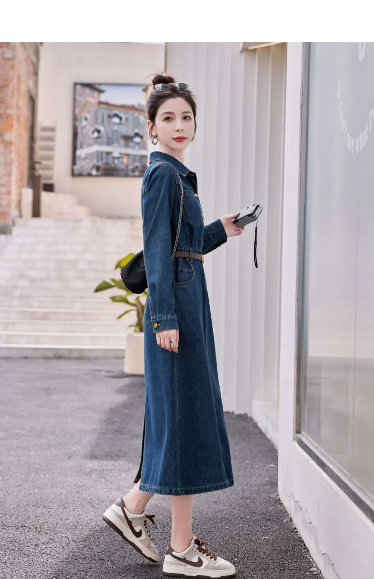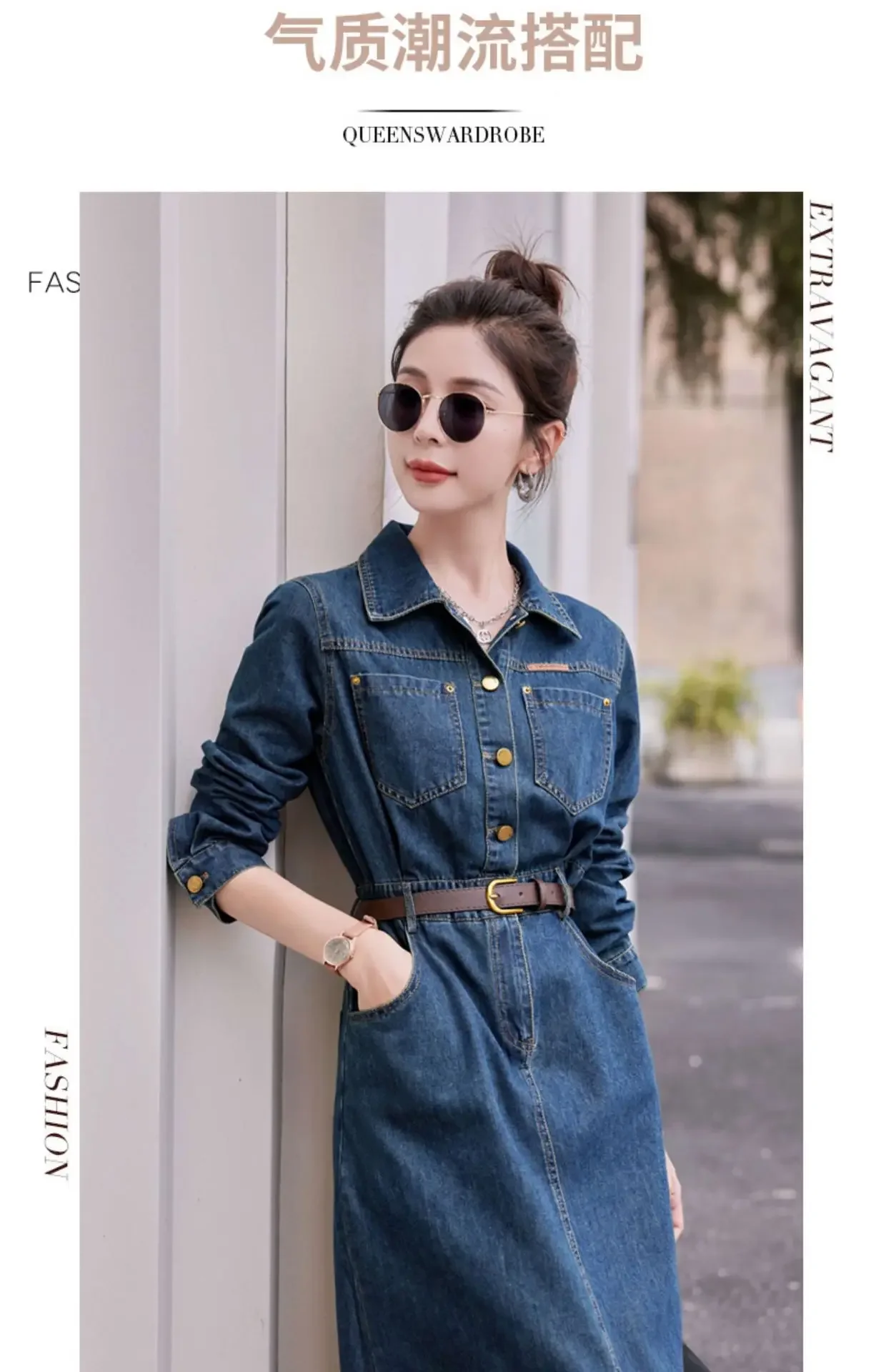 Fashionable Long Sleeve Denim Dress Women Spring Autumn New High End Elegant Casual Slimming Shirt Style Ankle Length Dress