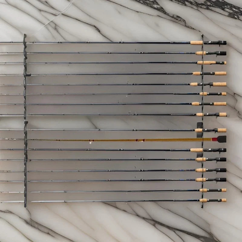 Craft from metal, this fishing rod rack features a practical designs that allows for horizontal and vertical mounting, ensuring a great suitable for any space.