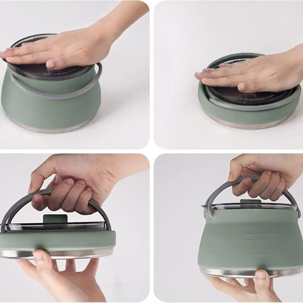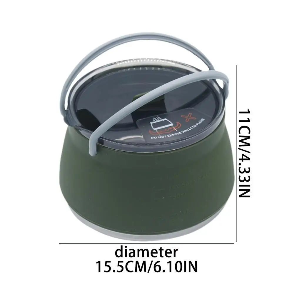 2.Food Grade Silicone: Complies with food safety standards, this foldable and highly resilient camping kettle is made from non-BPA food-grade silic1, ensuring it is odorless, heat-resistant, and flexible.
