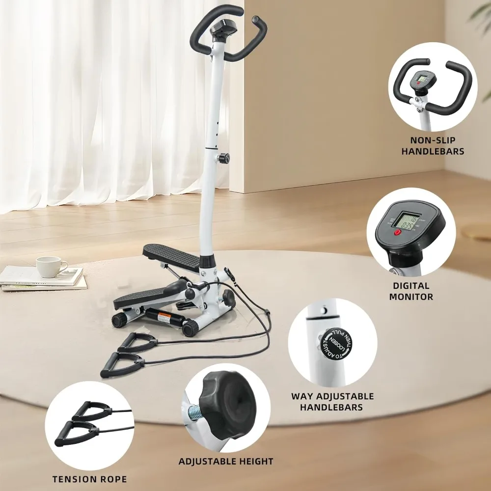 Here is a rewritten product description based on the provided information: --- Discover the ultimate stepper machine designed to help you achieve a well-toned physique. This versatile workout equipment targets multiple muscle groups, including your legs, buttocks, hips, arms, shoulders, and biceps, with the aid of extended training bands. Safety and stability are paramount, and our stepper machine features a handlebar that forms a triangular design when in use, ensuring your balance and security during workouts. The robust construction can support a maximum weight of 300LBS, allowing users of various strengths to train confidently. Experience a smooth and quiet workout with our stepper's advanced double hydraulic cylinders, which provide consistent resistance throughout your exercise routine. The hydraulic system ensures a stable and serene workout environment. Enjoy the convenience of a compact and easy-to-install design. Our stepper arrives with 90% of the parts pre-assembled, making the remaining assembly quick and simple. It's perfect for daily use and can be easily stored in small spaces. The height is adjustable to accommodate different users. Stay on track with our digital LCD monitor, which offers scientific training guidance and suggests 10-minute workout routines for general fitness. Your purchase includes the stepper machine, resistance bands, a user manual, and all necessary installation accessories. We also provide a lifetime warranty and 24-hour online customer support to ensure your satisfaction. --- This rewritten description maintains the original meaning while avoiding the use of special symbols and ensuring a smooth, clear presentation of the product's features.