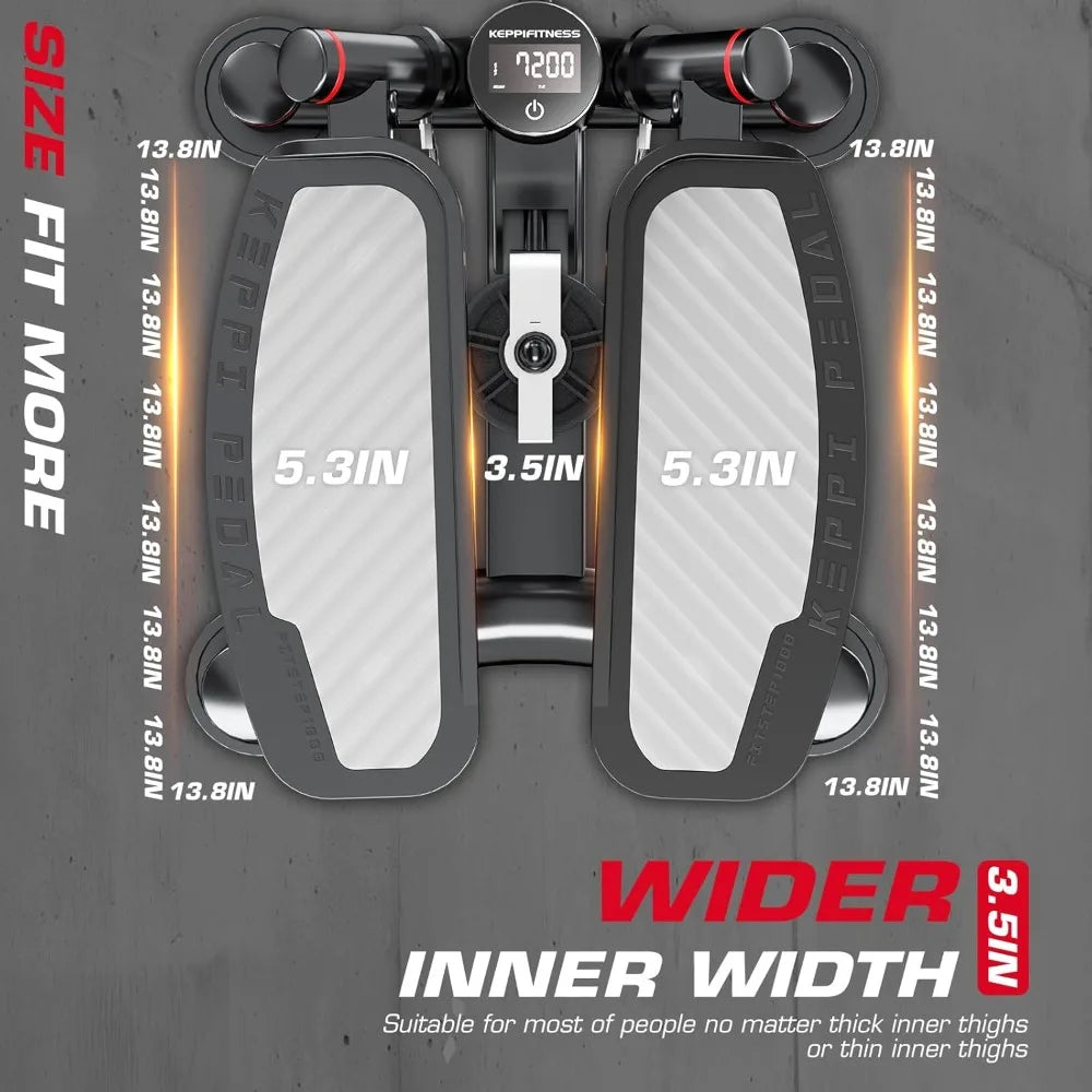 This product description highlights the features of the FITSTEP1000 PRO stair stepper: - It is a commercial-grade exercise machine that has been developed and improved over two years, ensuring it is both practical and effective for workouts. - The stepper can support up to 400 pounds and is constructed with heavy-duty alloy steel and four sturdy stands for safety and durability. It also includes a rubber pad for anti-slip and floor protection. - The optimal size of 17.7 inches in length, 16.5 inches in width, and 9.8 inches in height, along with a 3.5-inch inner width, makes it suitable for users of different sizes. - The V-shaped motion trajectory engages more muscle groups and enhances fat burning efficiency, while also reducing knee pressure during exercise. - A high-definition LED monitor is equipped for clear data display, allowing users to monitor and schedule their training sessions easily. - The stepper uses premium hydraulic cylinders that provide consistent resistance, long-lasting performance, and excellent tightness. - It operates quietly and smoothly due to precision assembly and high-grade lubrication, ensuring a noise-free workout environment. Additional features include an oversized anti-slip pedal designed for comfort and grip, no assembly required for immediate use, a compact design for easy storage and relocation, and professional support from KeppiFitness for any product-related inquiries.
