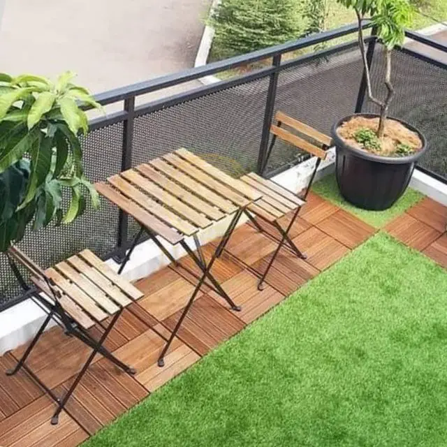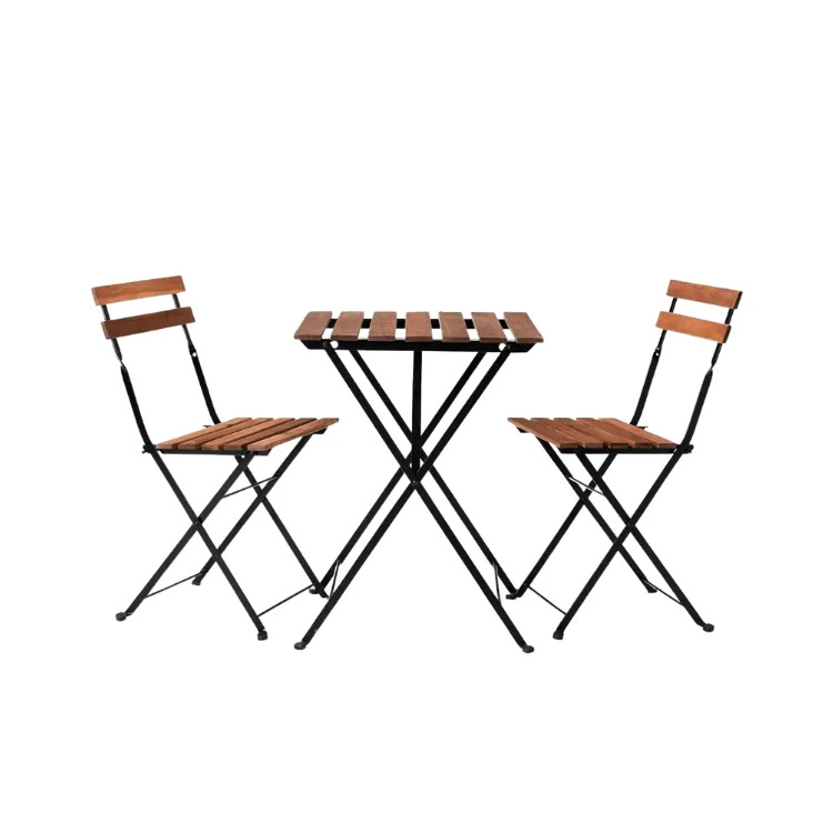 Kanhome Bestseller Factory Price Outdoor Wood 3PCS Coffee Bistro Balcony Set Folding Garden Chair and Table Set from Vietnam