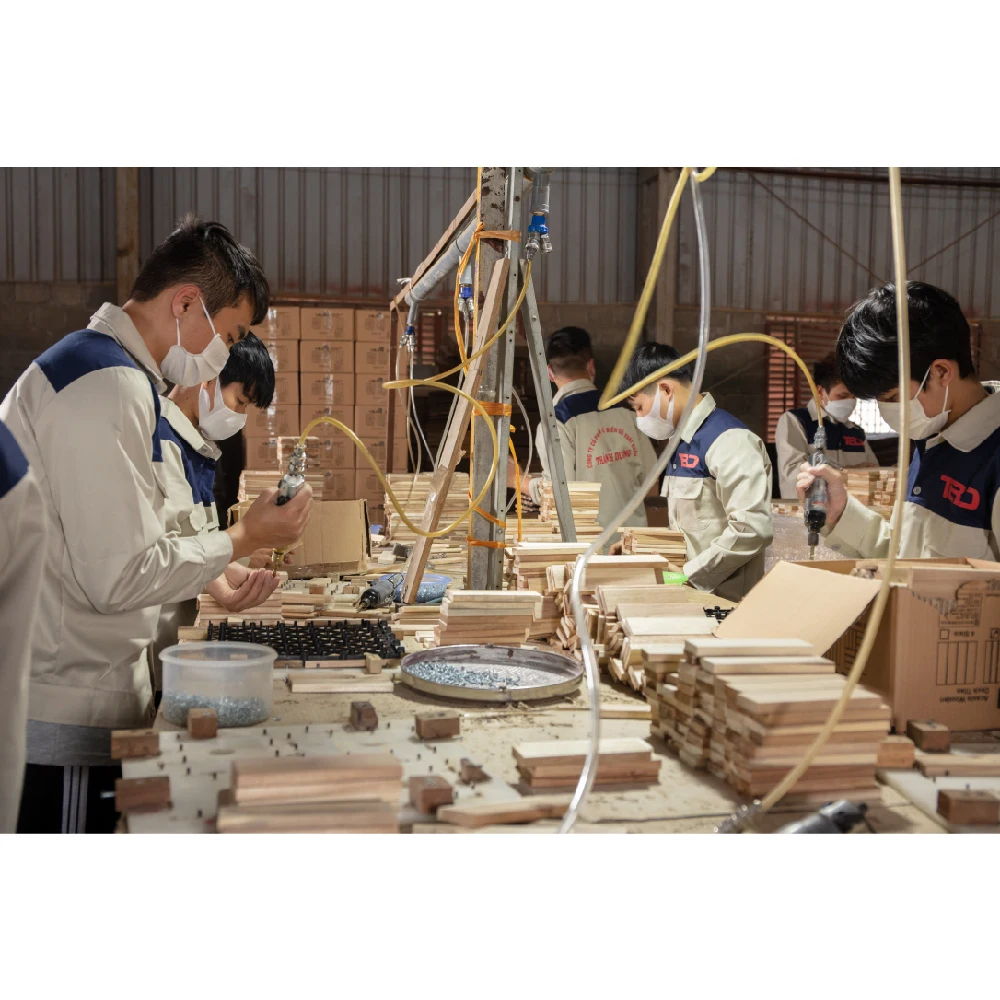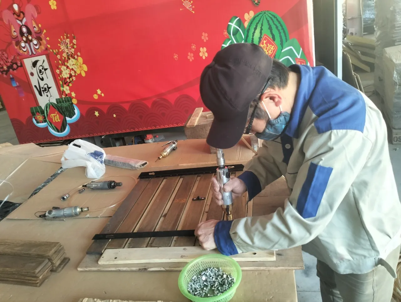 Packaging method: 1 set per brown carton box (1 set = 1 table + 2 chairs). Package dimension: 94x57x14.5cm. 855 sets/40HC