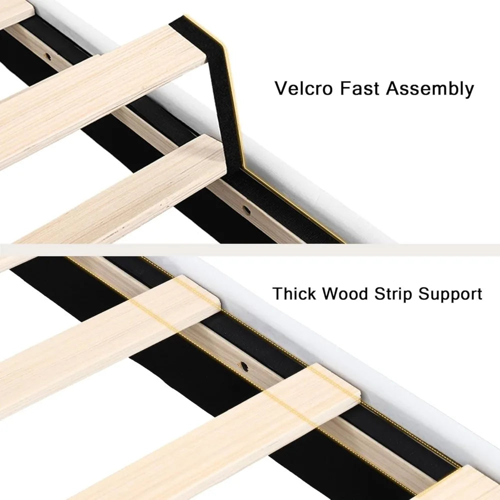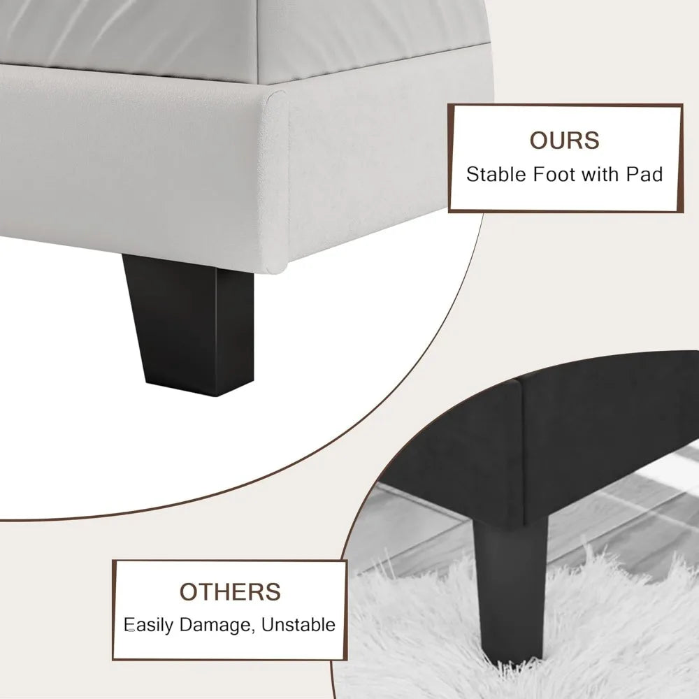 - Thoughtful Design: Crafted with soft linen edges to prevent accidental bumps, this bed base also features EVA silent strips and anti-slip pads, creating a safe and serene bedroom environment for ultimate comfort