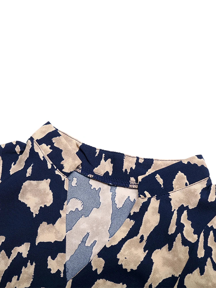 Ladies Causal Pleated Medium Long Dress Women Lace Up High Waist V Neck Full Sleeve Print Dress
