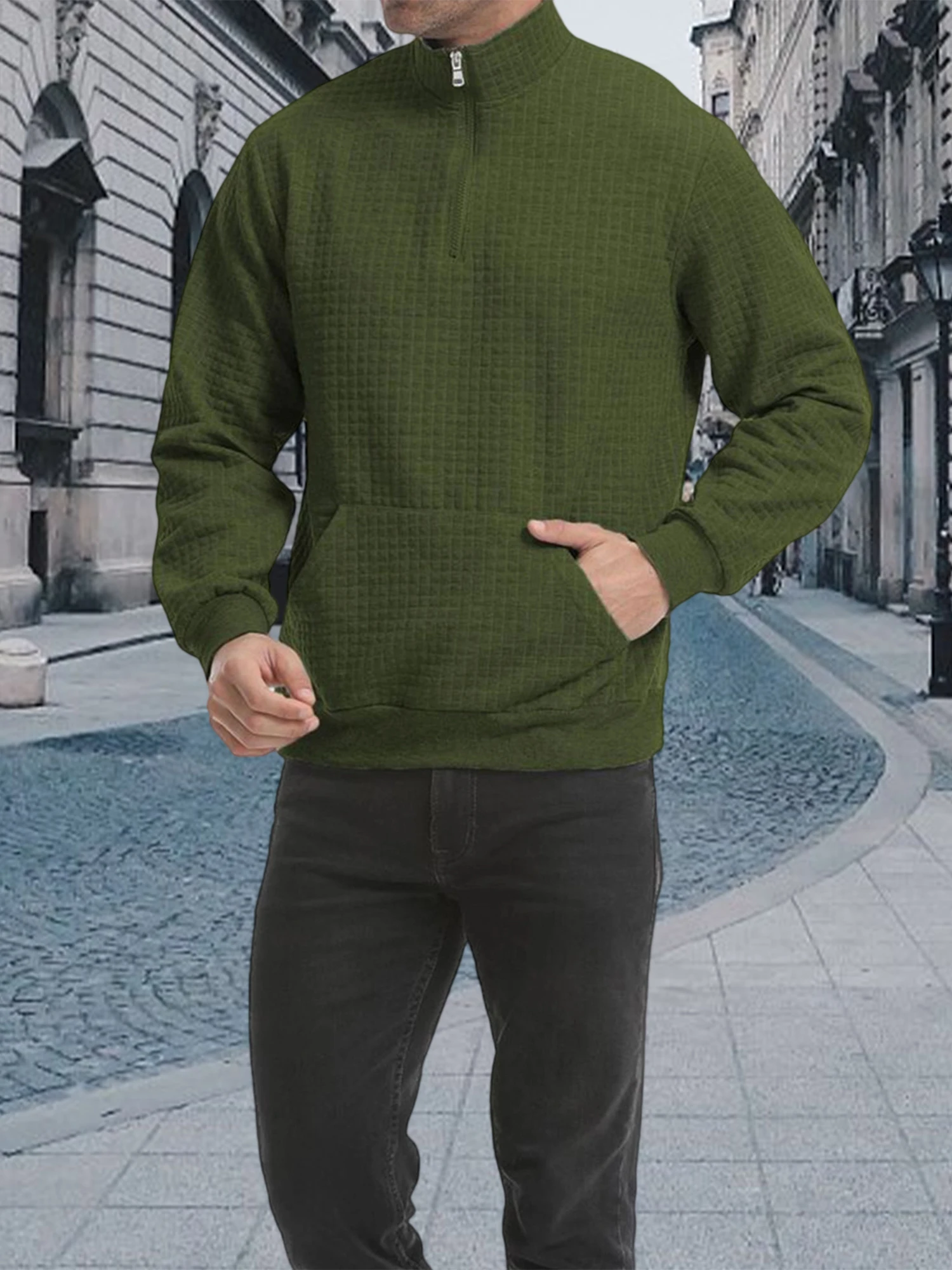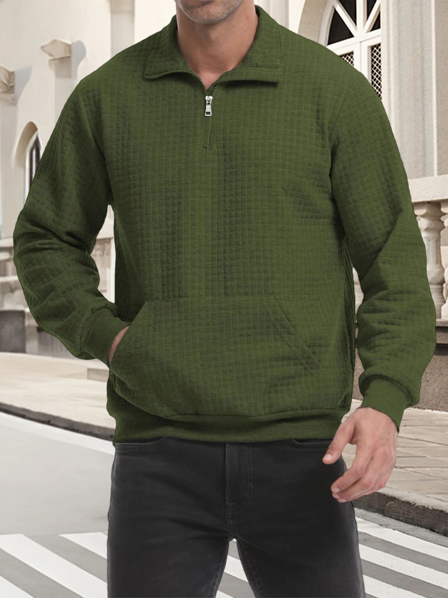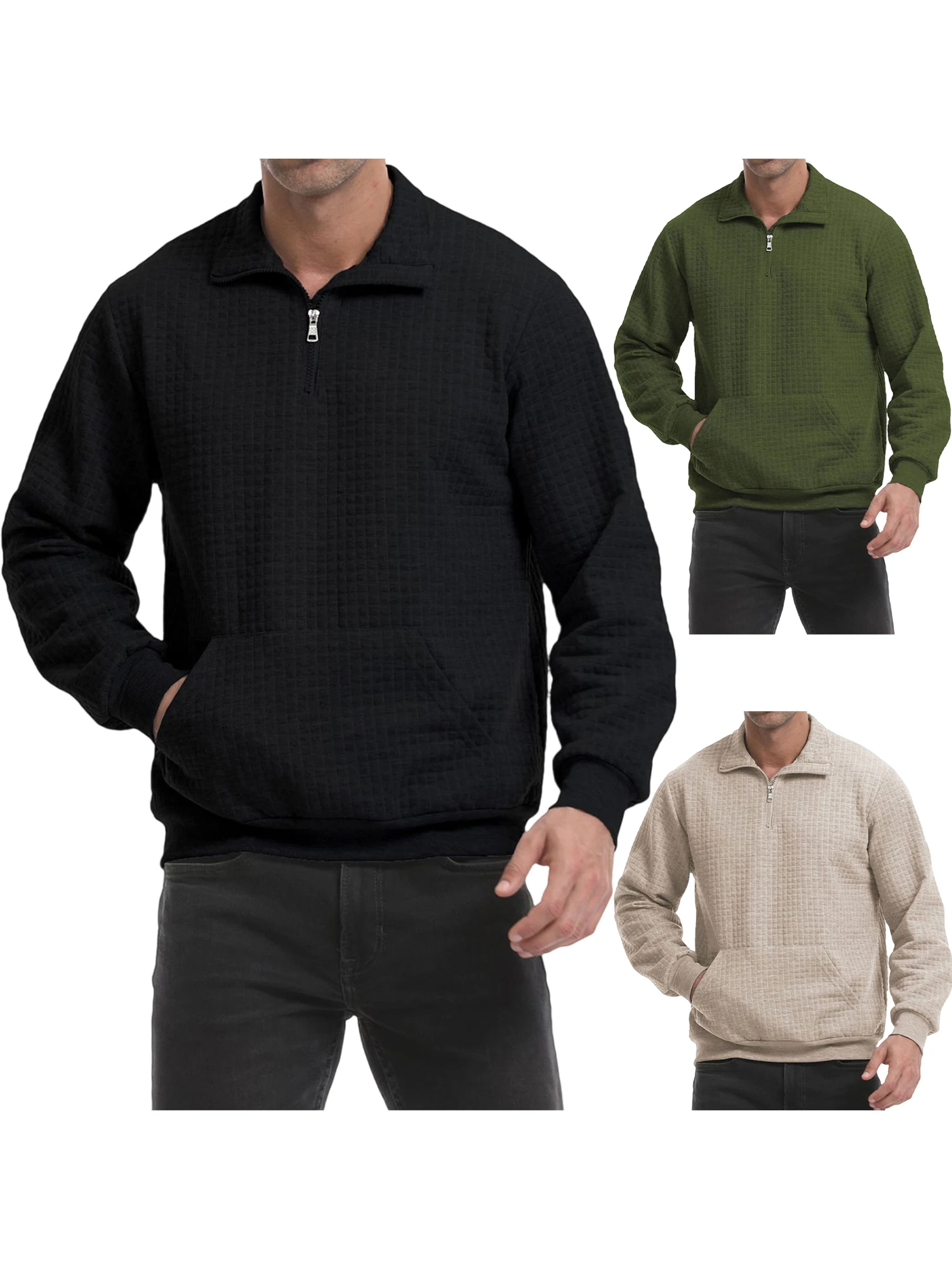 Mens 1/4 Zipper Sweatshirts Long Sleeve Stand Collar Loose Pullover Warm Fall Shirts TopsFeatures: