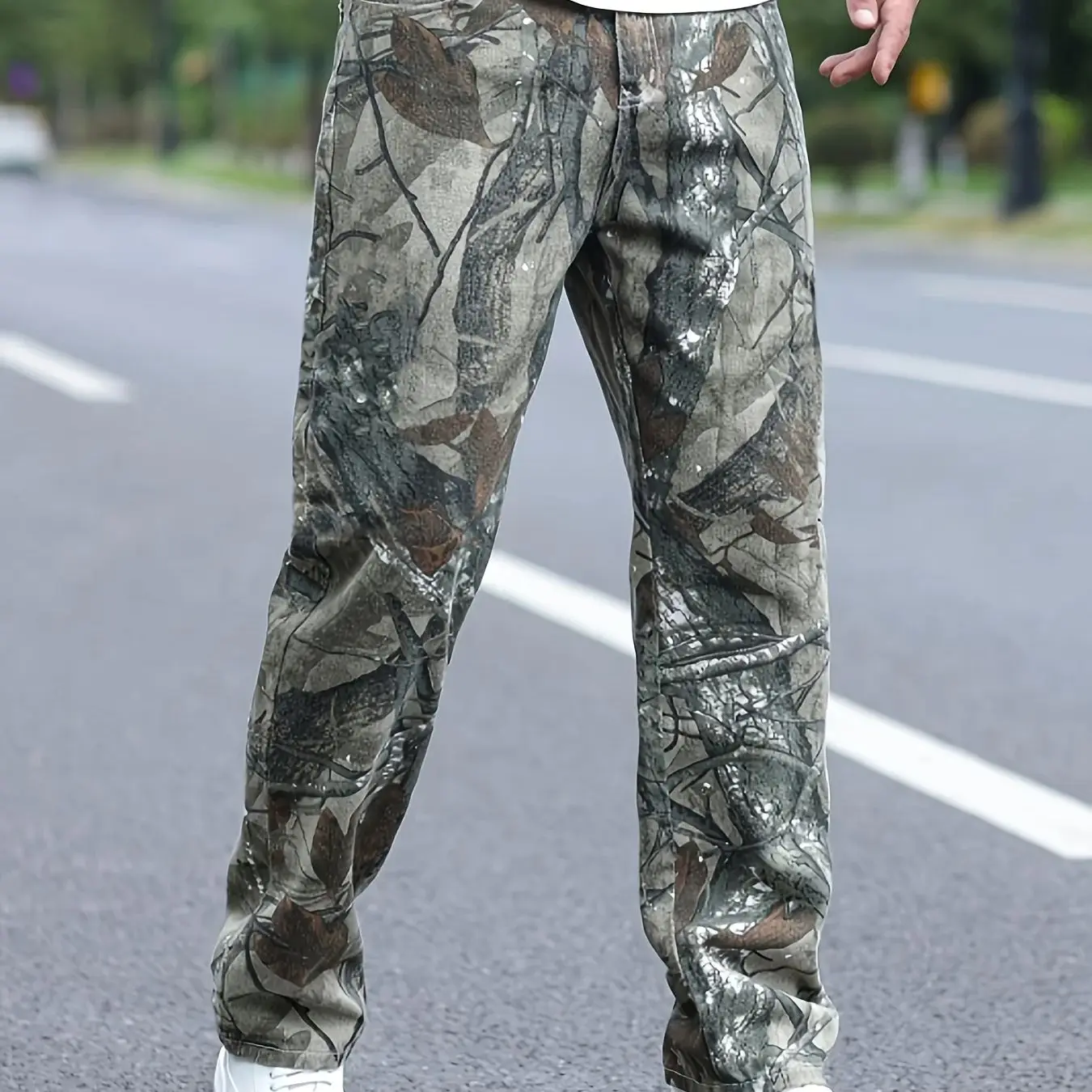 Men's Overalls American tree branch men's pants camouflage work pants denim pants