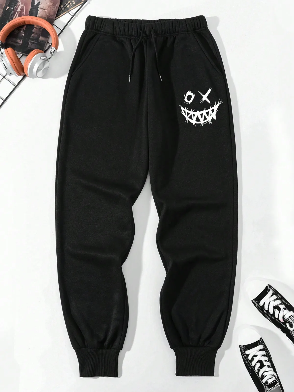 Men's Smiling Face Printed Drawstring Waist Pants for Rave Trendy Pattern Drawstring Sweatpants Casual Slightly Stretch Joggers