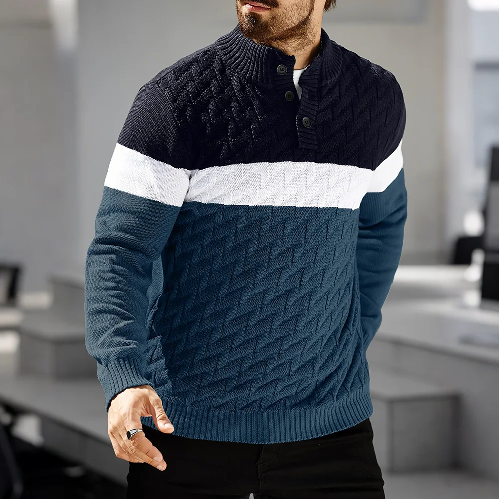 Men's Sweater Autumn Warm Contrasting Color Shawl Collar Pullover Long Sleeve Fit Casual Cable Knit Tops US Size
