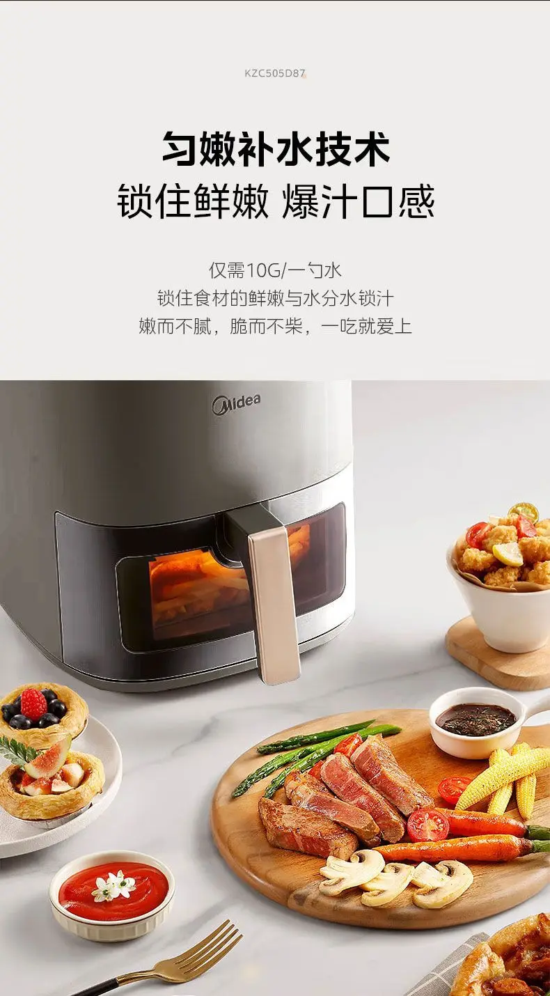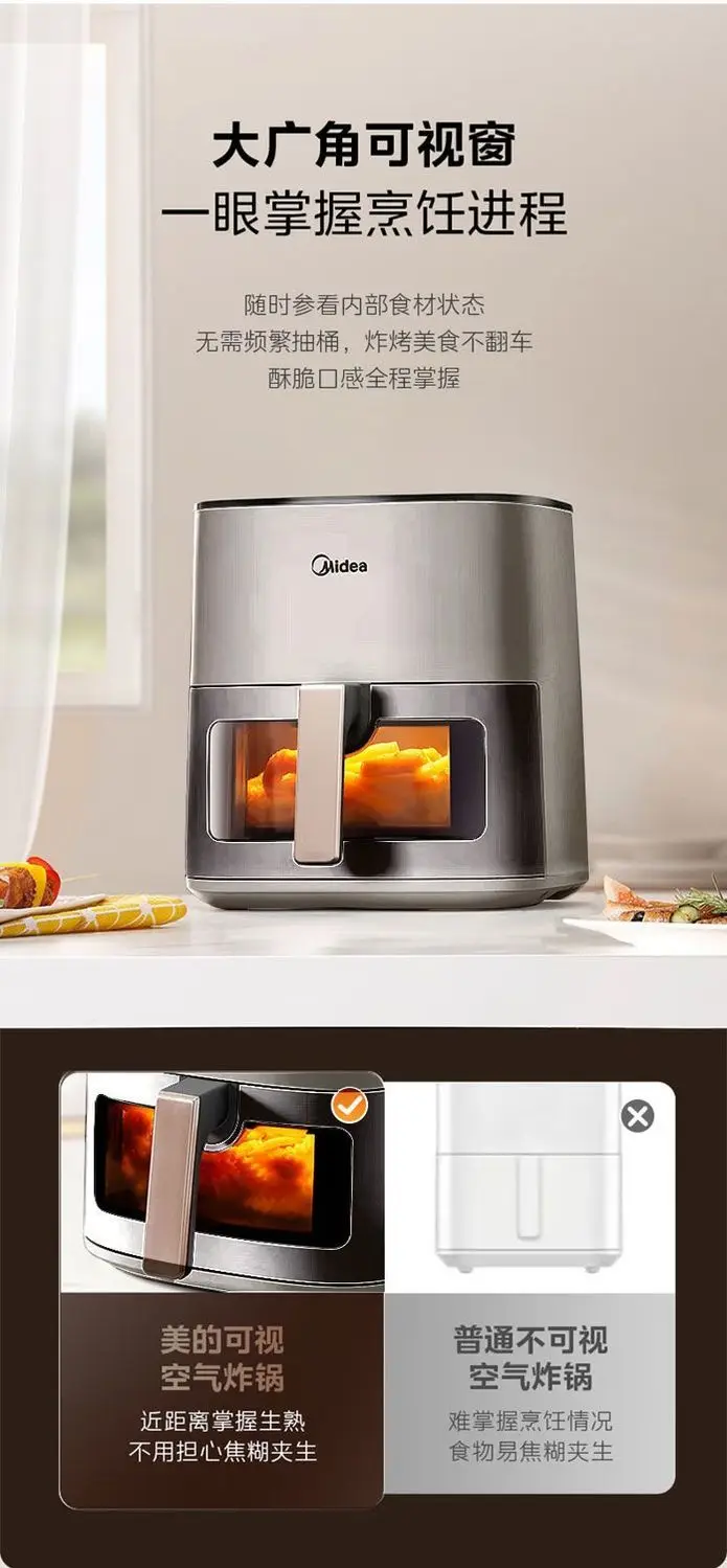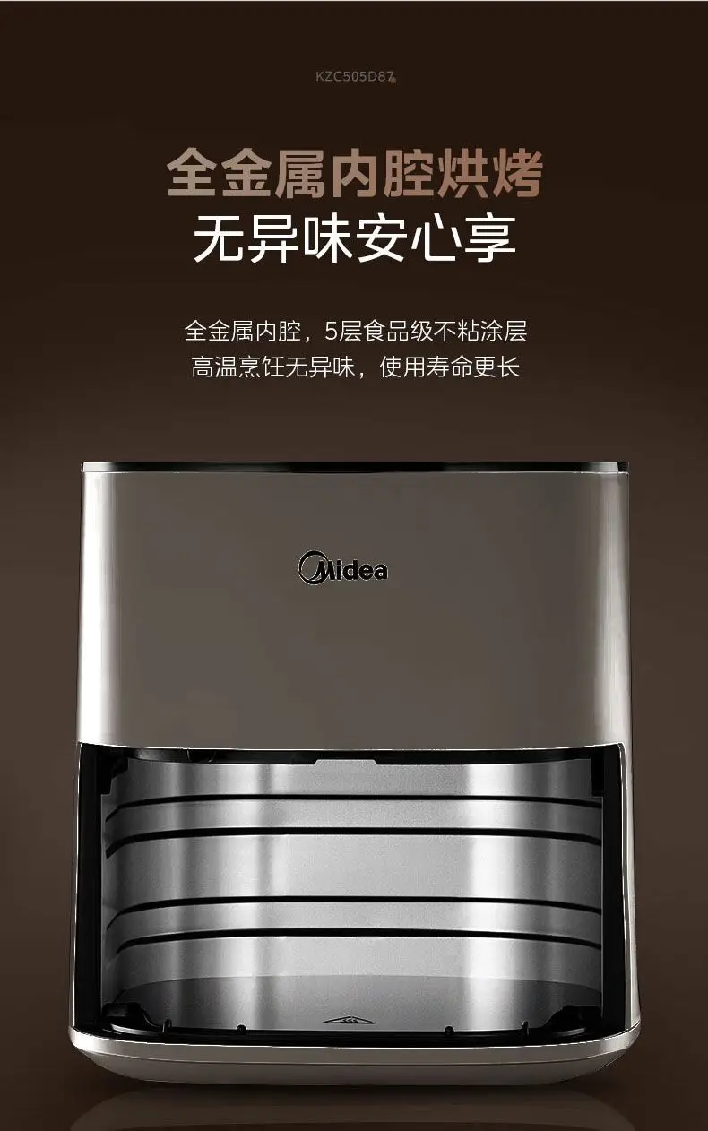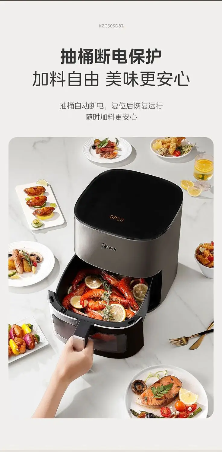 Midea Air Fryer 5L Large Capacity Flip-Free Full Metal Liner Smart Full Screen Touch Smart Air Fryer