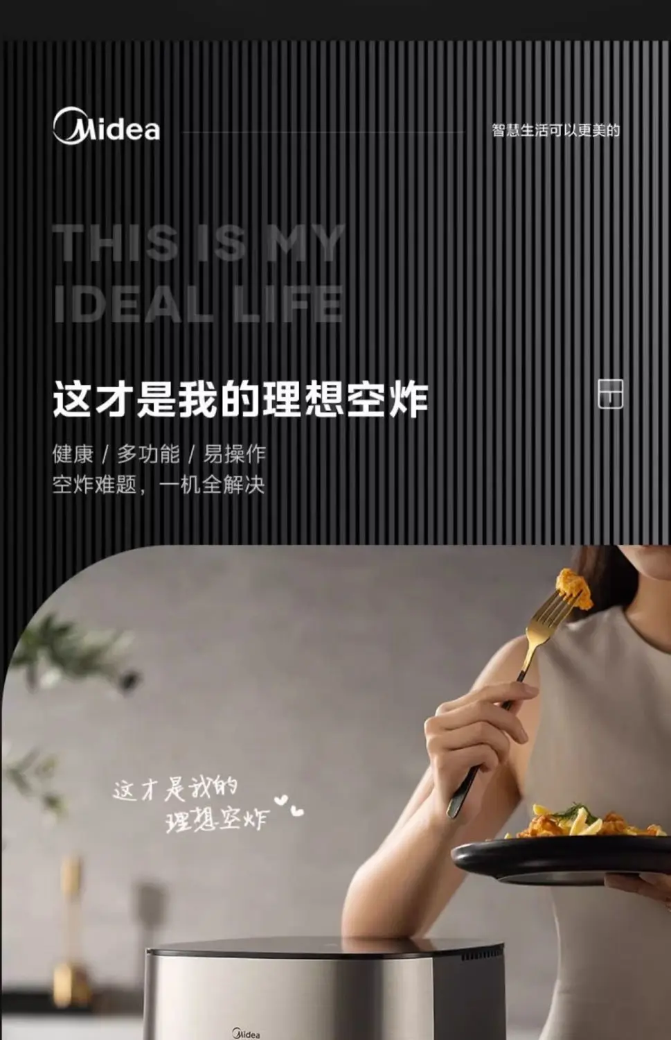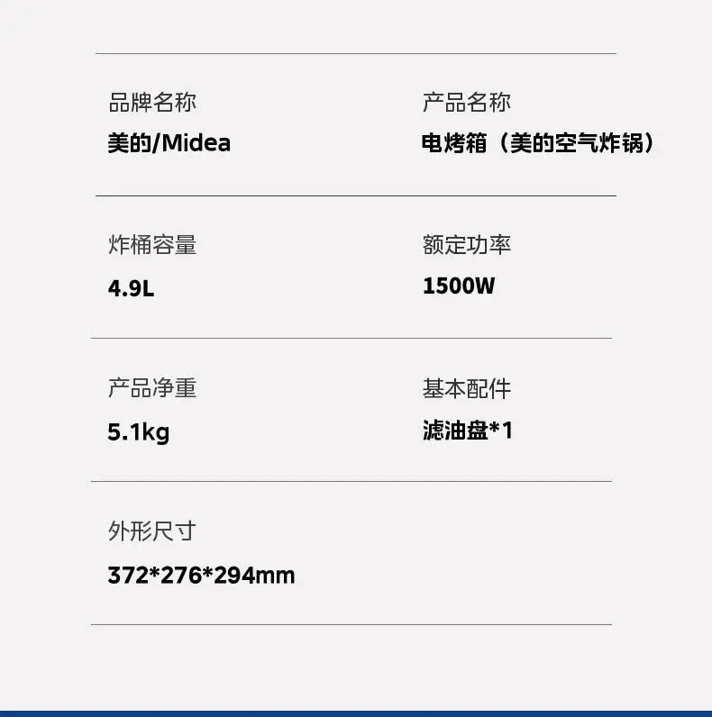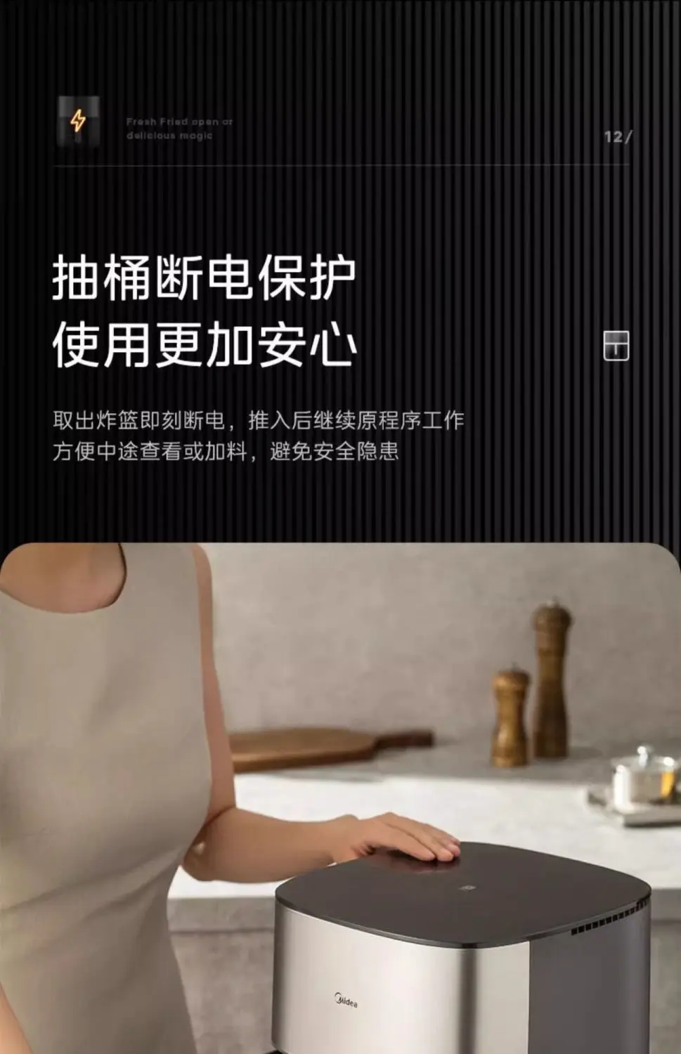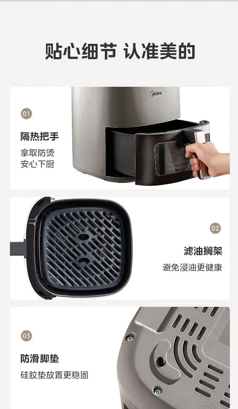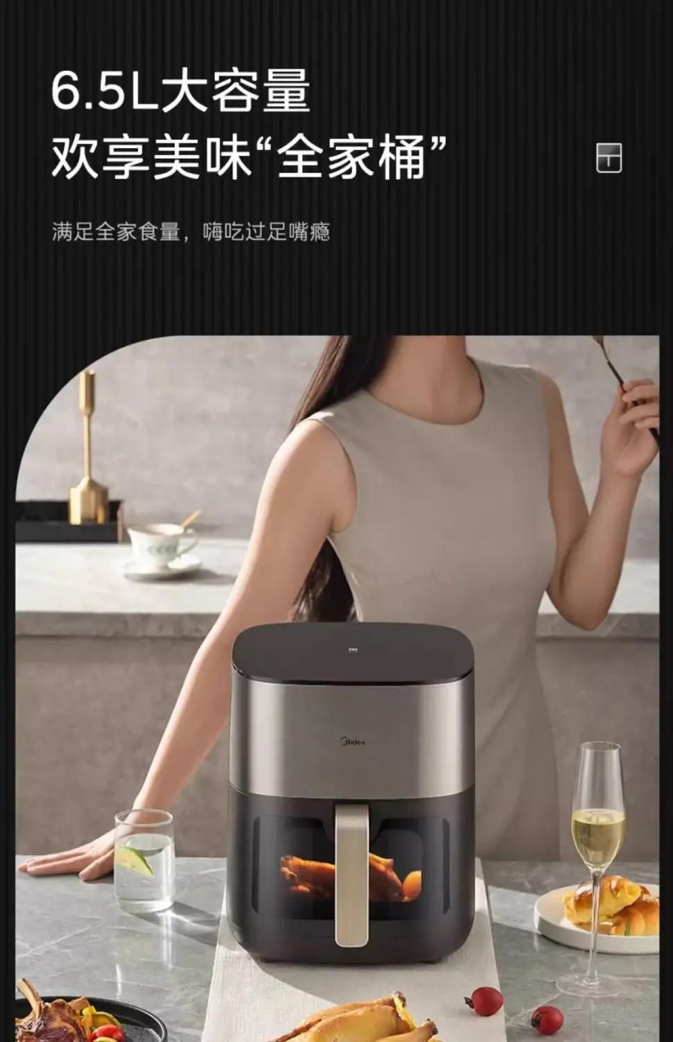 Midea Air Fryer 5L Large Capacity Flip-Free Full Metal Liner Smart Full Screen Touch Smart Air Fryer