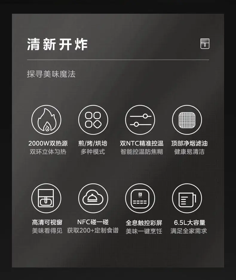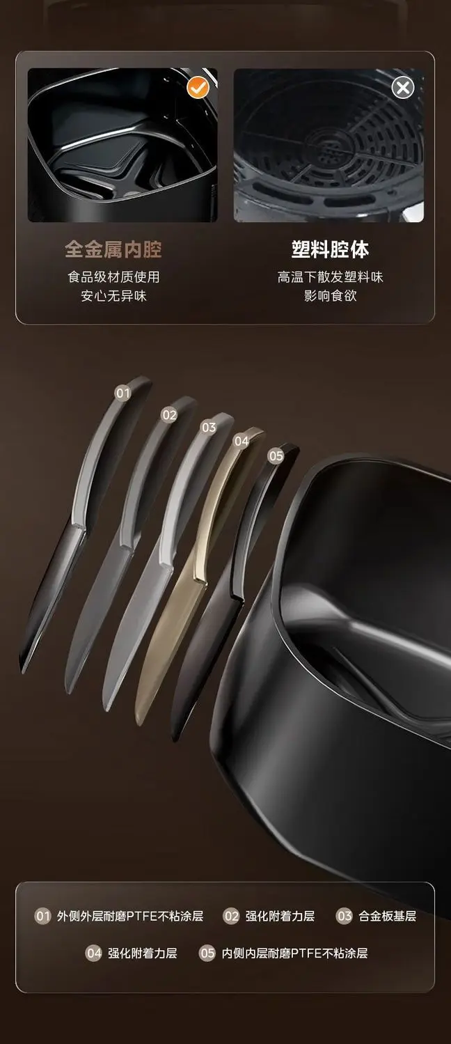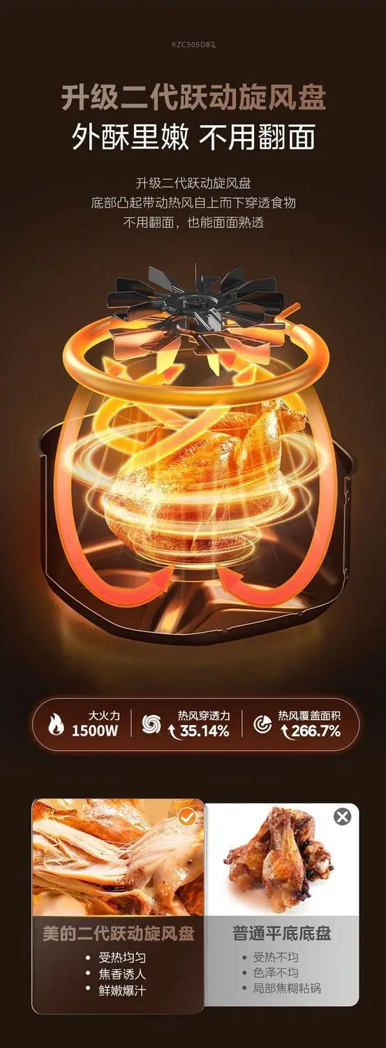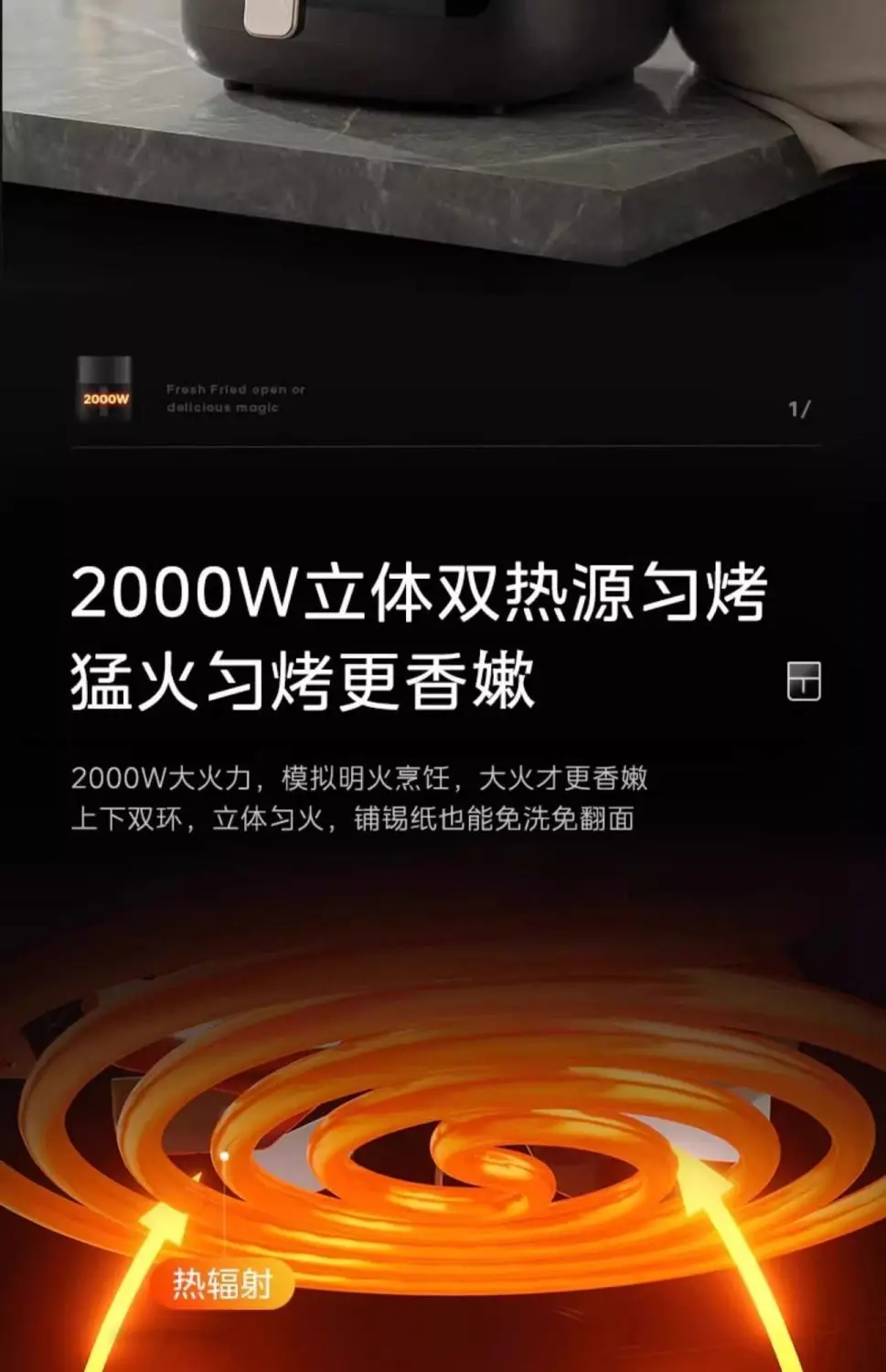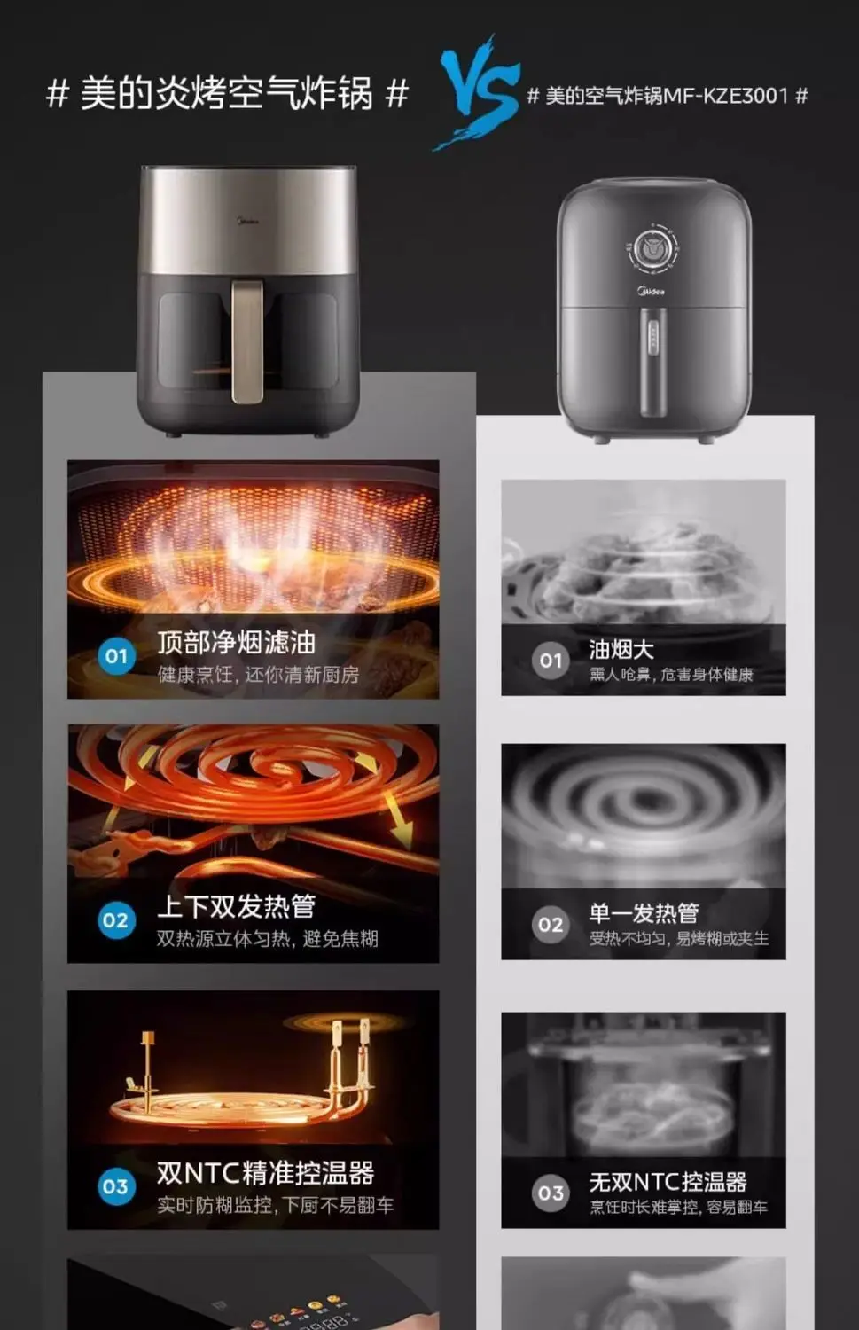 Midea Air Fryer 5L Large Capacity Flip-Free Full Metal Liner Smart Full Screen Touch Smart Air Fryer