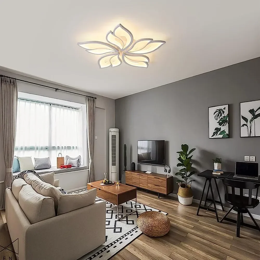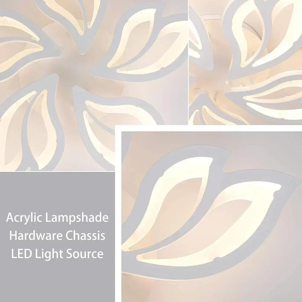 Modern Ceiling Light 60cm Dimmable LED Chandelier Flush Mount,Remote Control Acrylic Leaf Lamp Fixture for Living Room 60W