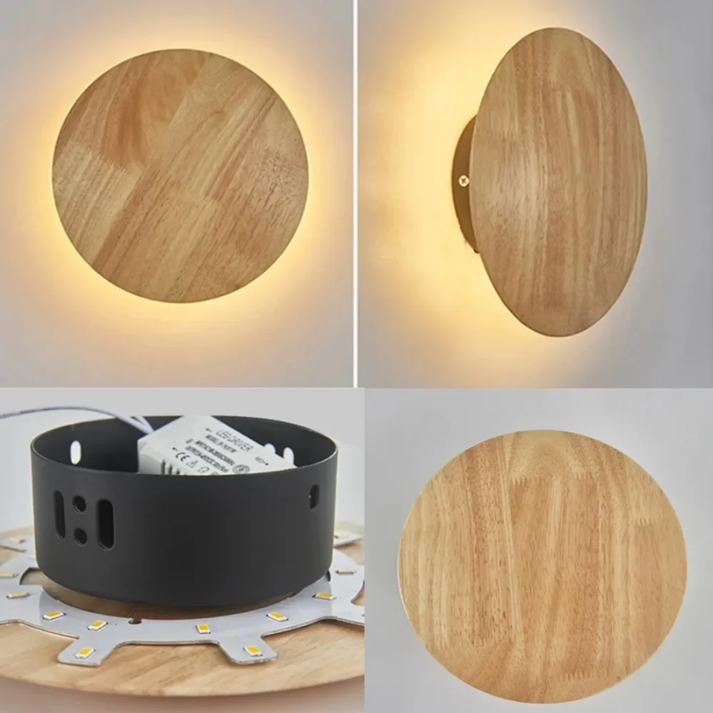 Modern LED Wall Lamp Circular Creative Wooden Wall Lamp Background Wall Bedroom Living Room Corridor Staircase Home decoration