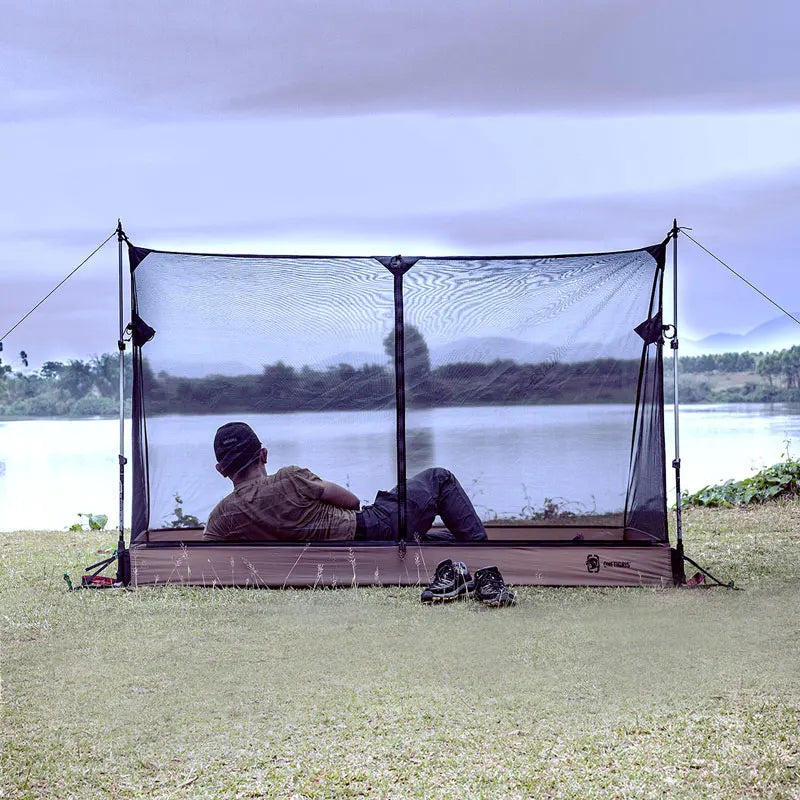 A mesh inner tent for solo campers to use with a tarp or compatible outer tents such as our ROC SHIELD and SOLO HOMESTEAD camping shelters, featuring solid 70D nylon mesh construction with a bathtub floor of 3000mm waterproof rating. Keep your camping gear safely stored and nicely dry, and sleep in the wild without worrying about mosquito bites!
