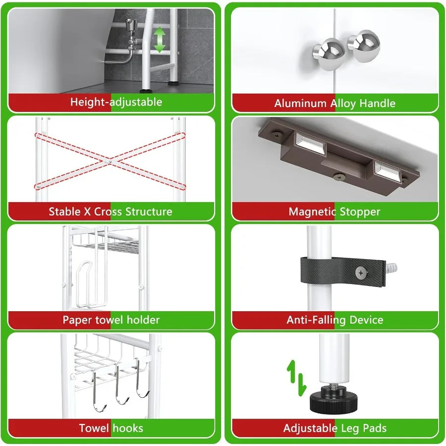Over The Toilet Storage Cabinet with 2Door Design for Bathroom Organization Freestanding SpaceSaving Shelf Above Toilet with Pr