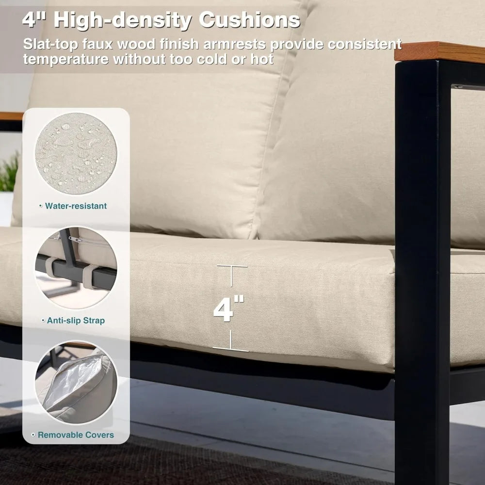 Patio Furniture Set, 4 Pieces Outdoor Patio Furniture with Coffee Table Set, Metal Patio Conversation Sets with Washable and Hig